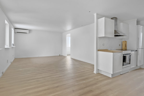 Den regulære stue, der er nem at møblere, ligger i forbindelse med køkkenet, så I vil opleve en god sammenhæng mellem de forskellige dele af opholdsarealet. I får endda også et bryggers, hvor der er en vaske- og tørremaskine, og det ligger i forlængelse af køkkenet og med adgang via en skydedør. Det er således en gennemført praktisk bolig, som fremstår ganske pæn og kun har behov for en smule kærlighed for at komme til at fremstå i tiptop stand.