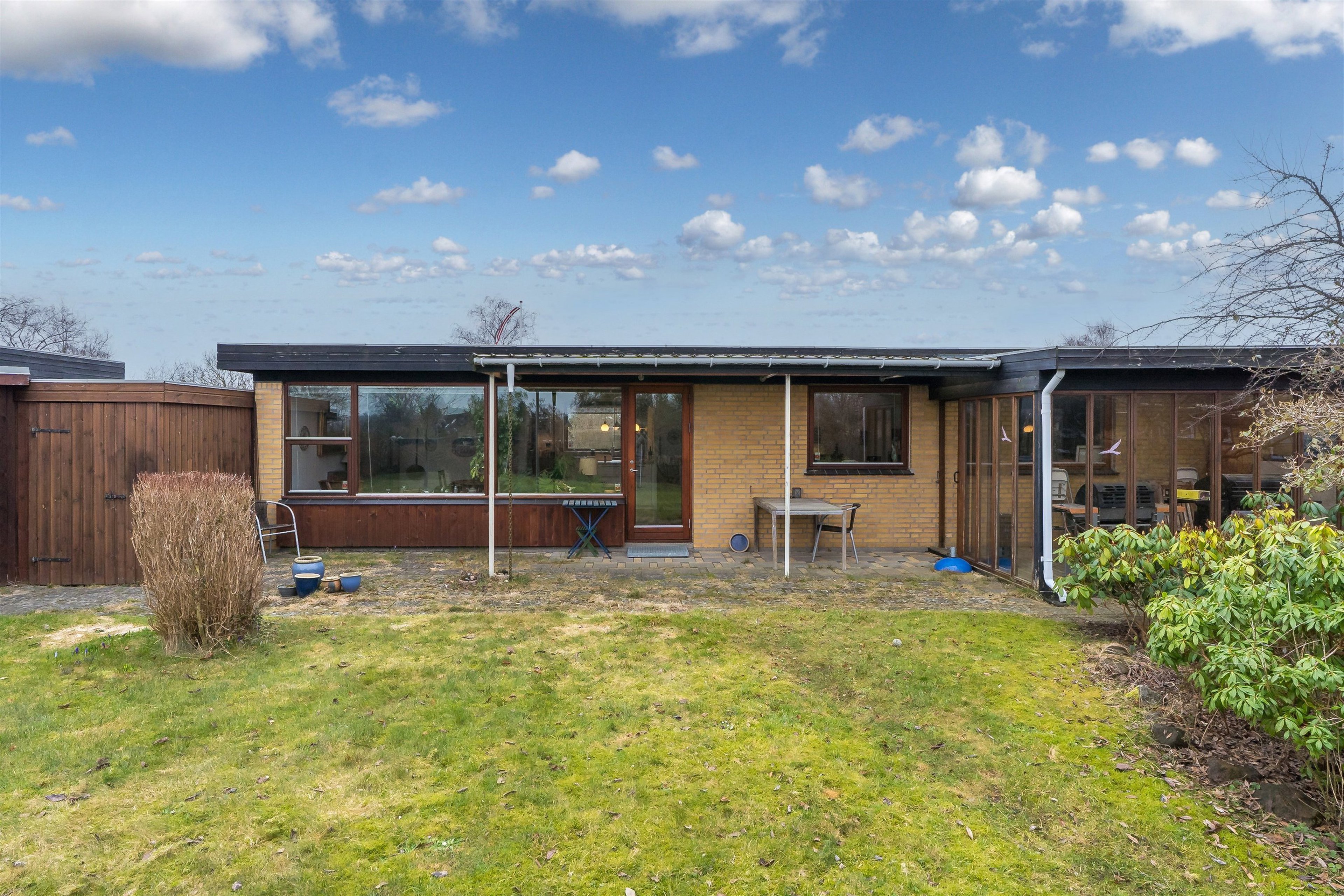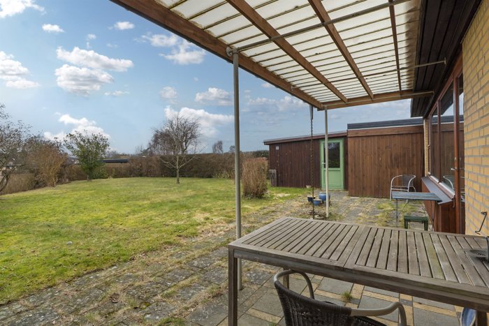 Huset byder på en velanlagt terrasse med overdækning og en skøn, rummelig have, der er orienteret helt ideelt i forhold til verdenshjørnerne