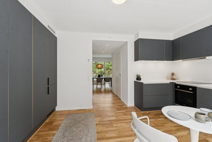 Hjemmet fuldendes med lækre trægulve i matlakeret eg samt et decentralt ventilationsanlæg.