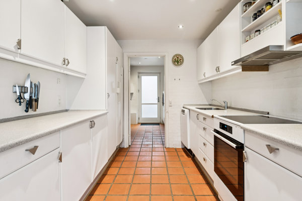 Indretningen byder på tre regulære soveværelser, et lyst og funktionelt køkken med god opbevaringsplads samt en stor og indbydende spise-/opholdsstue i åben forbindelse. De store vinduespartier sikrer et dejligt lysindfald og en naturlig overgang til terrassen og haven. Her er god plads til både sofaarrangement og spiseafdeling.