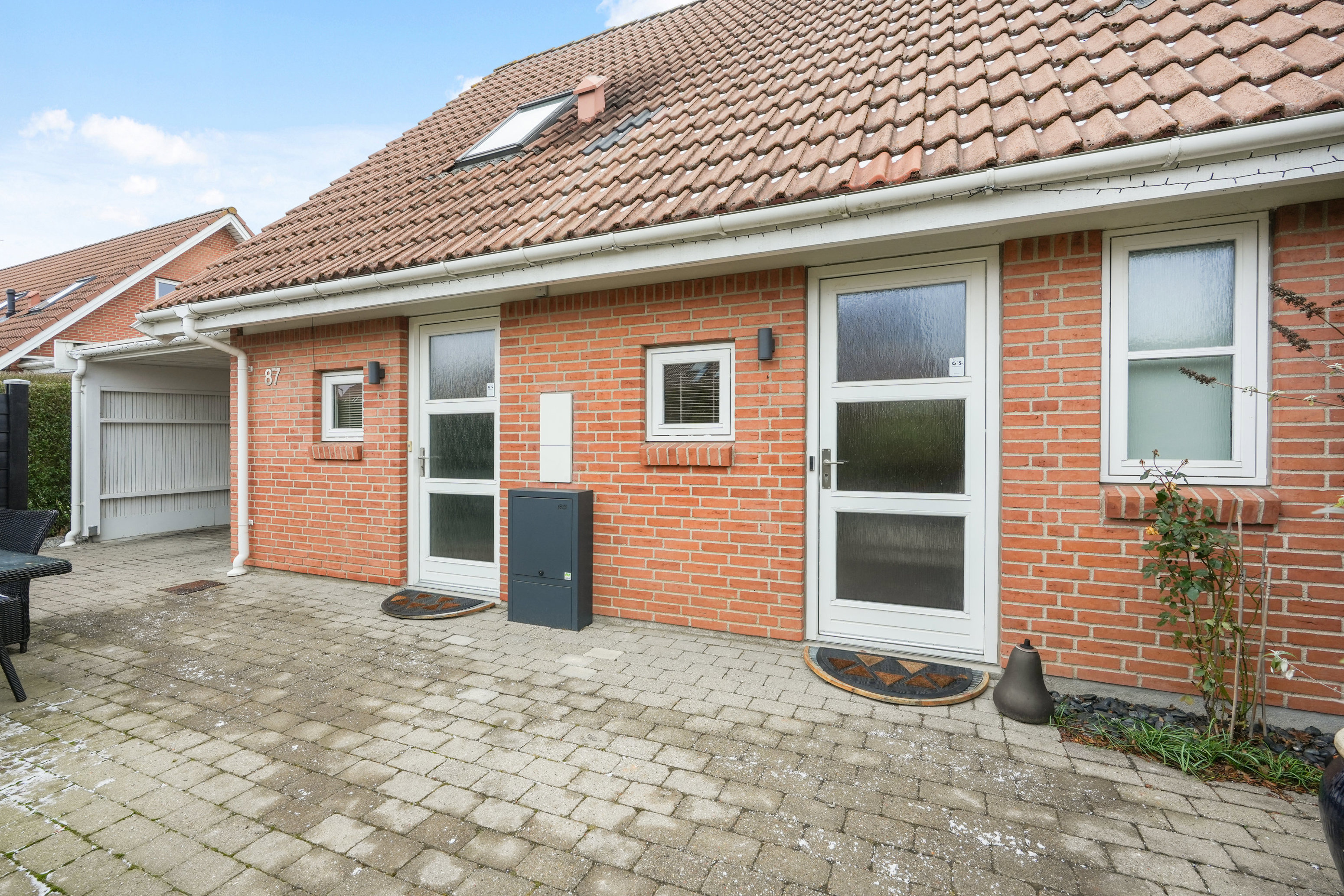Her er ikke noget, der mangler, så boligen er kort sagt klar til indflytning. Ovenikøbet får I et relativt moderne hus fra 2003, og udenfor møder I et pænt byggeri, hvor røde murstensfacader bliver komplementeret af hvide døre, vinduesrammer og udhæng. På sydsiden af huset finder I en carport til bilen, og de 24 m2 rummer endda et lille redskabsskur.