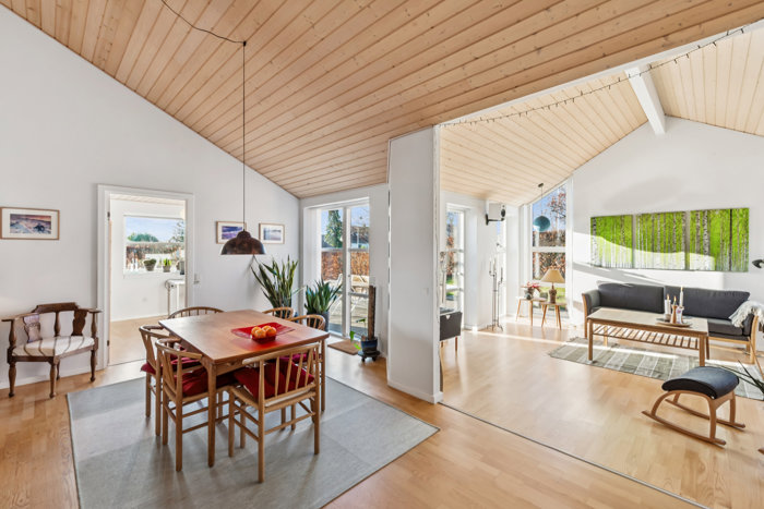 Boligen fremstår velindrettet med en planløsning, der giver plads til både fællesskab og privatliv. De lyse opholdsrum indbyder til samvær, mens værelserne nemt kan indrettes efter behov – uanset om det er soveværelse, børneværelser, hjemmekontor eller gæsteværelse. Køkkenet ligger naturligt i forbindelse med boligens opholdsarealer og giver gode rammer for både hverdagsmadlavning og hyggelige stunder.