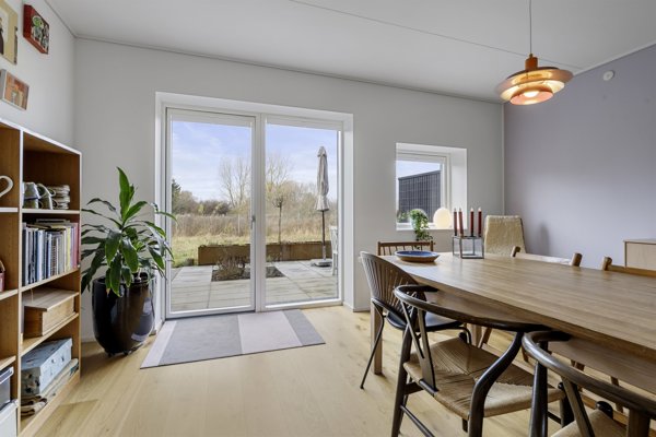 Indretningen er kreativ, utraditionel og fuld af kant – en bolig med masser af karakter, hvor arkitekturen får lov at tale, og hvor materialer og lysindfald går op i en højere enhed. Samtidig giver det nyere byggeri dig både lavt energiforbrug, minimal vedligeholdelse og moderne komfort hele vejen igennem.