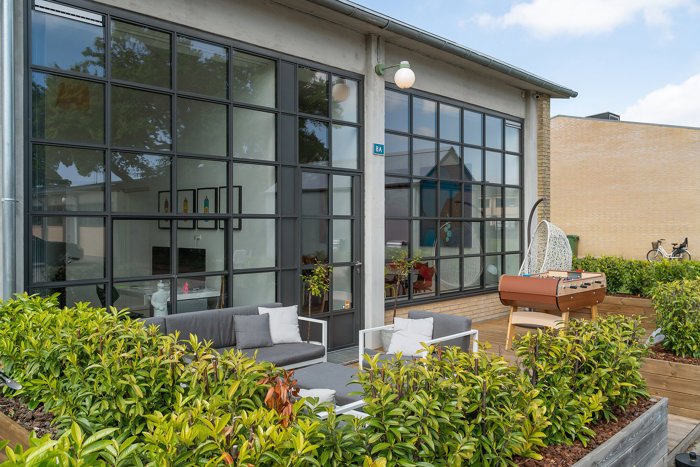 Udelivet er lige så gennemtænkt som boligen selv. Ejendommen byder på træterrasser på begge sider af huset, så du kan nyde solen fra morgen til aften, skabe flere hyggelige zoner og altid finde læ eller lys alt efter tidspunkt og årstid. Her er plads til loungemøbler, grillmiddage og afslapning i private omgivelser.