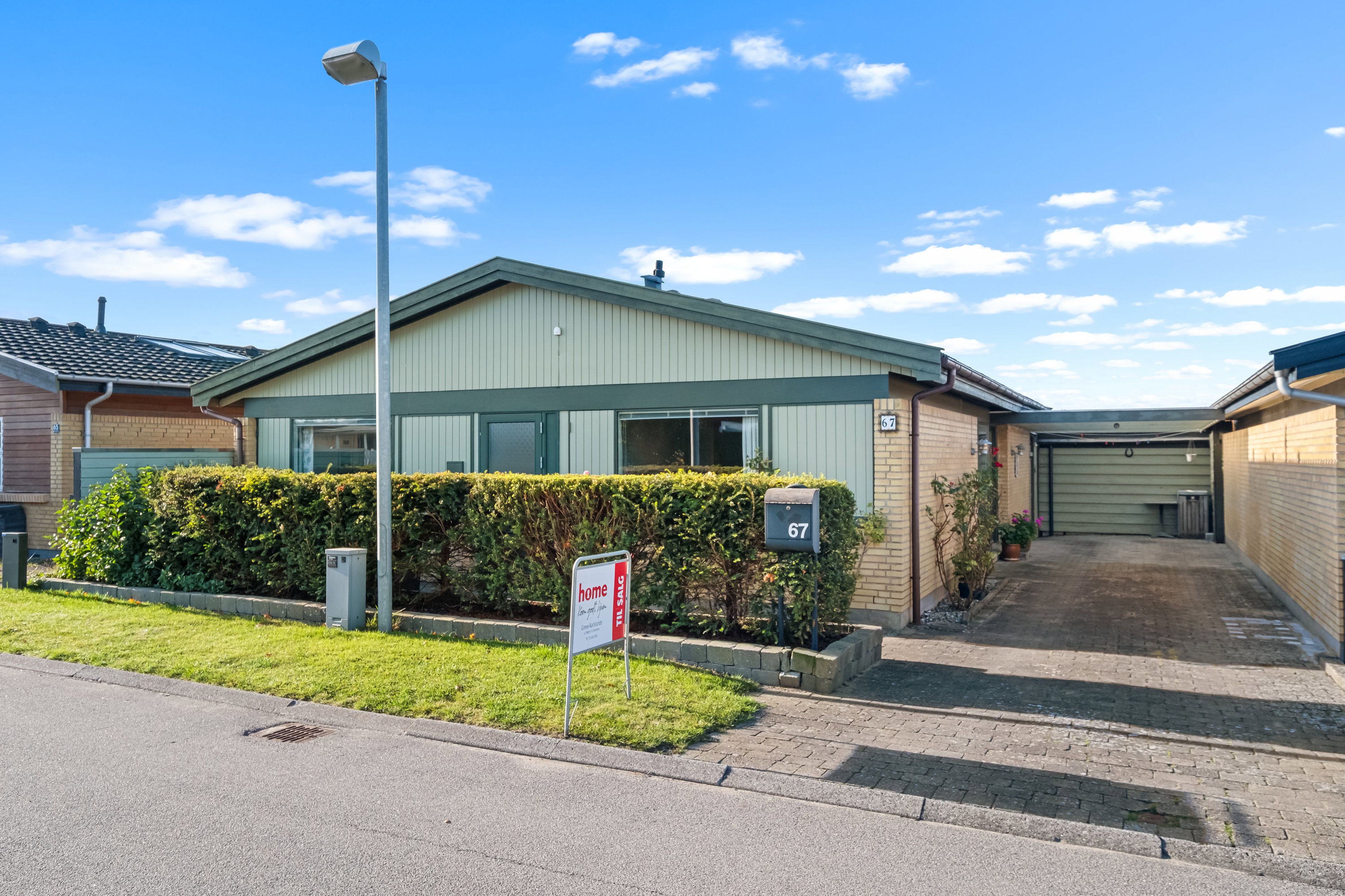modsatte side af huset – ved indkørslen – er der privat carport med indgang til et udhus, der har god
