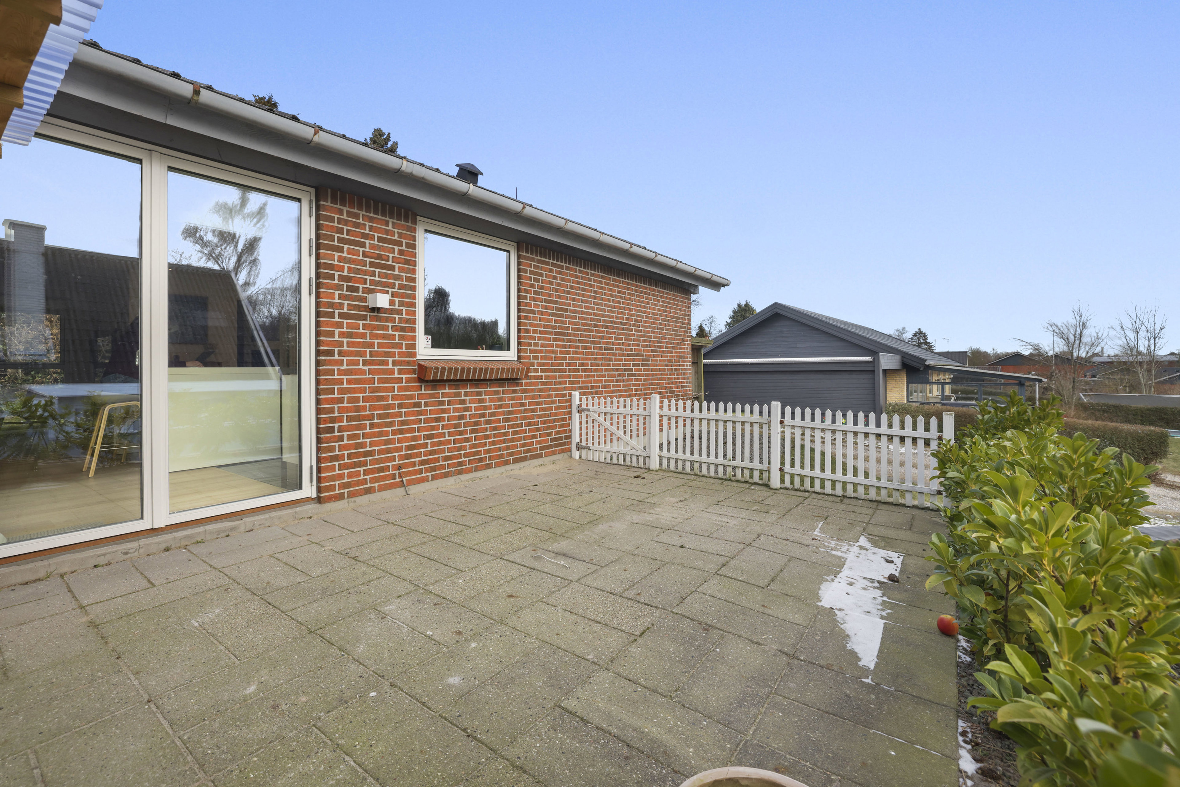 Udendørs venter en dejlig og vestvendt terrasse, hvor solen kan nydes fra eftermiddag til aften. Her er god plads til havemøbler og grill, og de rolige omgivelser skaber en privat og afslappende atmosfære. Haven er overskuelig og nem at holde, hvilket giver mere tid til at nyde udelivet.