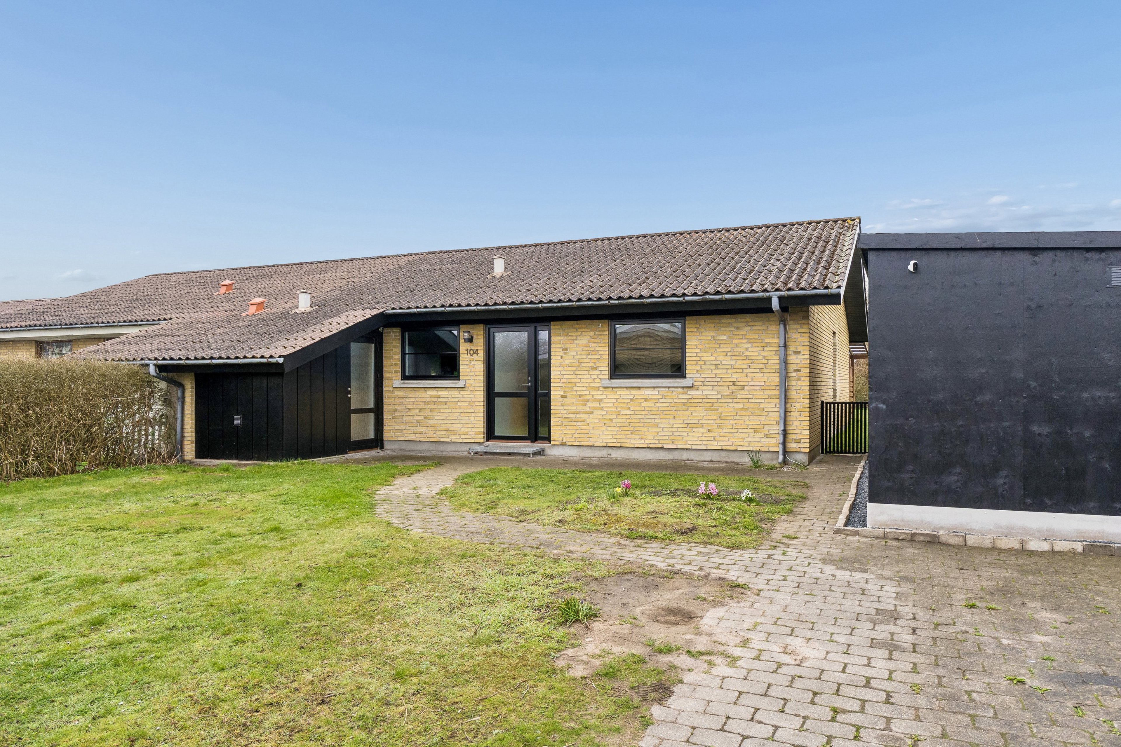 På Hjulets Kvarter 104 får I et fuldstændig indflytningsklart enderækkehus på 105 veludnyttede m², beliggende på en skøn og overskuelig grund på 557 m² i attraktive og rolige Holluf Pile.
