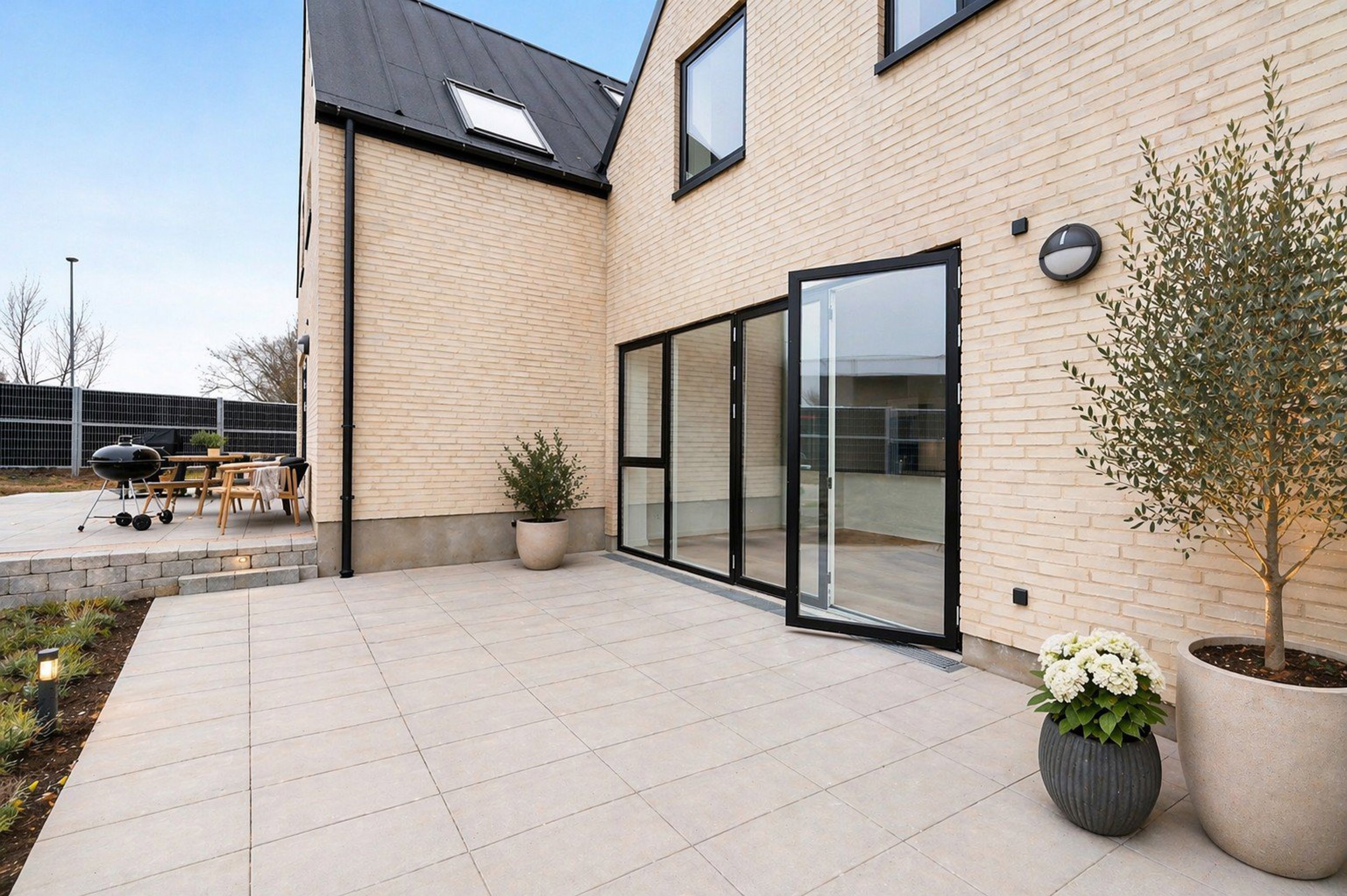 Til boligen hører desuden et udvendigt skur, flisebelagt terrasse samt nyplantet hæk. Boligerne er opført med fokus på kvalitet, og der er fortsat dækning via den 10-årige byggeskadeforsikring, hvilket giver ekstra tryghed.