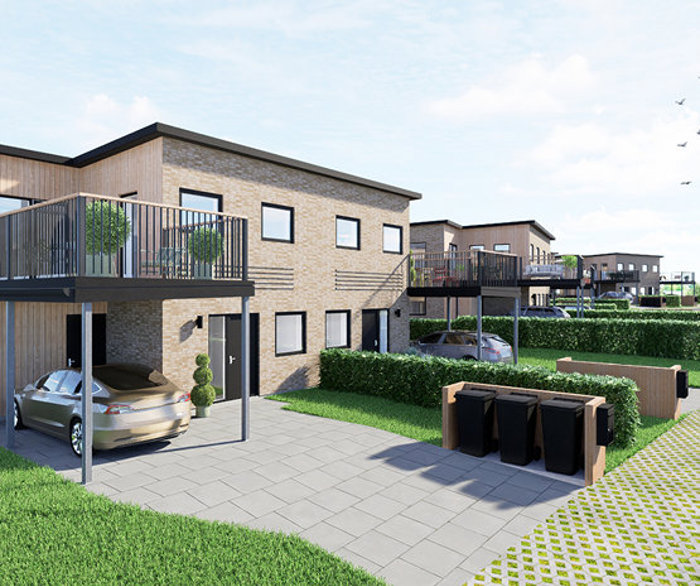 Boligerne kommer til at rumme 150 kvm, fordelt over to plan, fælles for dem alle er de gennemtænkte løsninger, som skaber gode rum for familien, smukt lysindfald og gode udearealer. Carport på hele 16 kvm, med god plads til bilen. Derudover også et skur på 4 kvm.