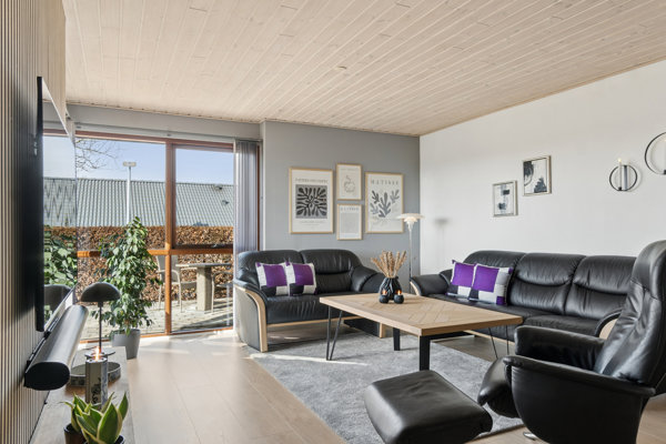 Husets hjerte er det skønne alrum med åben forbindelse mellem stuen og køkkenet, hvilket skaber en luftig rumfornemmelse, som forstærkes af lysindfald. Oveni gør indretningen det muligt at prioritere samvær på tværs af madlavning og forskellige aktiviteter. Det klassiske køkken har god opbevaringsplads, så bordpladerne er frie til madlavningen. Tilmed har stuen udgang til terrassen, som forener inde og ude.