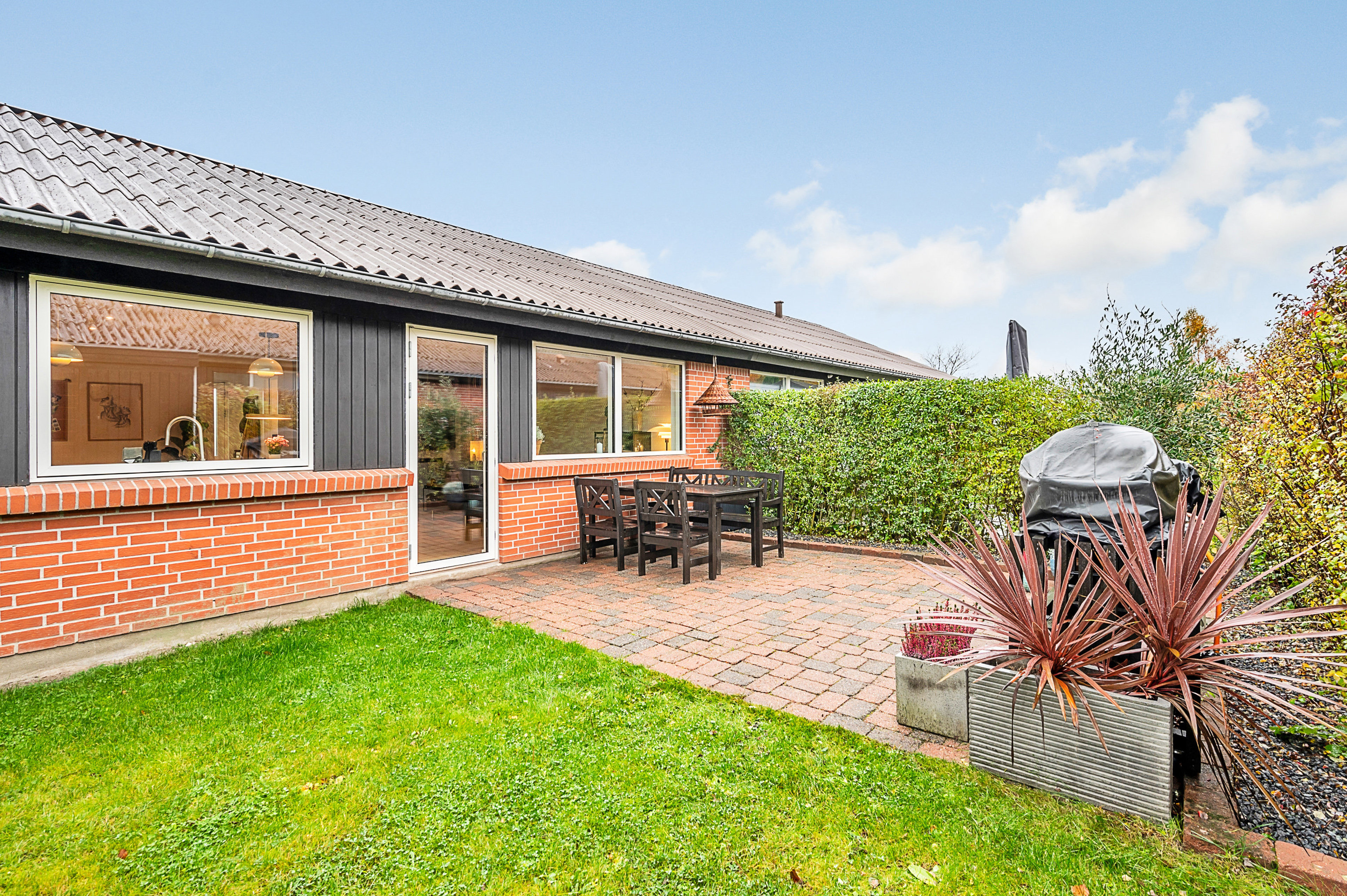 Indflytningsklart rækkehus i ét plan med solrig have