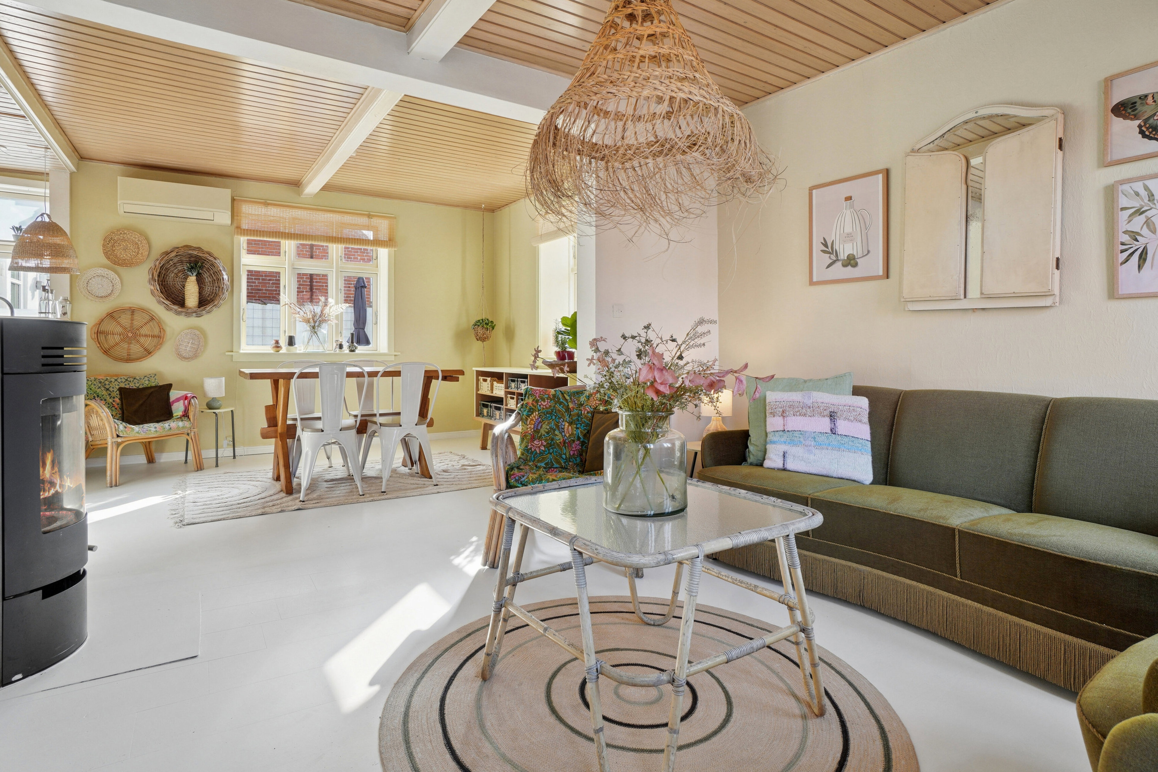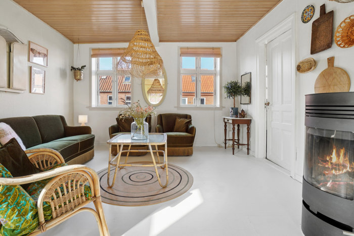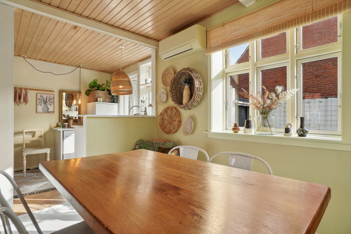 Inden døre venter et lyst og åbent opholdsmiljø, hvor de to stuer en suite og køkkenet hænger naturligt sammen og skaber en rummelig fornemmelse. Kvadratmeterne er godt udnyttet, og boligen fremstår lys og lige til at flytte ind i.