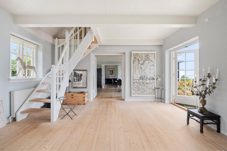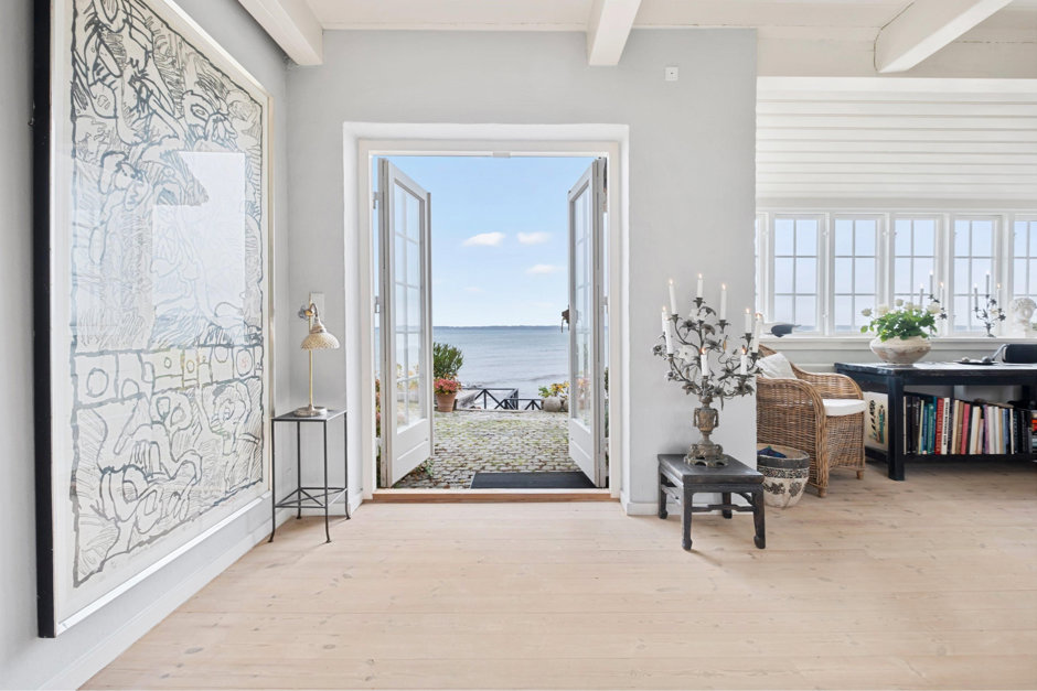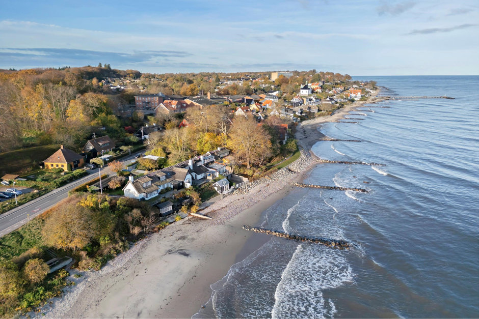 Ejendommen tilgås via flot stor trælåge ind til den smukke forhave med hyggeligt snoede sti op til hoveddøren, hvor du kan glæde dig til at opleve en stor møblerbar entré, bryggers, flot gæstebadeværelse med vindue, så du kan nyde et dejligt brusebad med udsigt til vandet... Herudover er der et lækkert snedkerkøkken med flot bordplade og luksuriøse hvidevare - her er plads til at samle familie og venner om det store bord, så middagene kan nydes og minderne skabes - med fri udsigt til vandet og den travle skibstrafik samt rige dyreliv med alt fra springende fisk til sæler og marsvin samt et rigt fugleliv; der alt sammen er med til at skabe en smuk malerisk udsigt og give en følelsen af livsnydelse - hver dag!