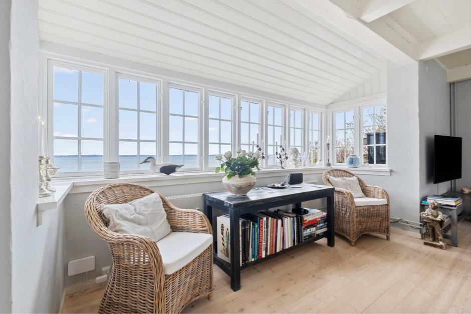 Desuden er der adgang til det charmerende lille lysthus, som er isoleret og med indlagt strøm; så man om sommeren kan rykke soveværelset helt ned til vandet - eller blot nyde en kop te eller et glas vin til lyden af bølgernes brusen og med den smukke kulisse i baggrunden... Vil du give dig selv en naturoplevelse og boligoplevelse i særklasse - så kom ud og oplev dette fantastisk dejlige sted, hvor man hver dag føler det, som om man er på sommerferie i sit eget hjem!