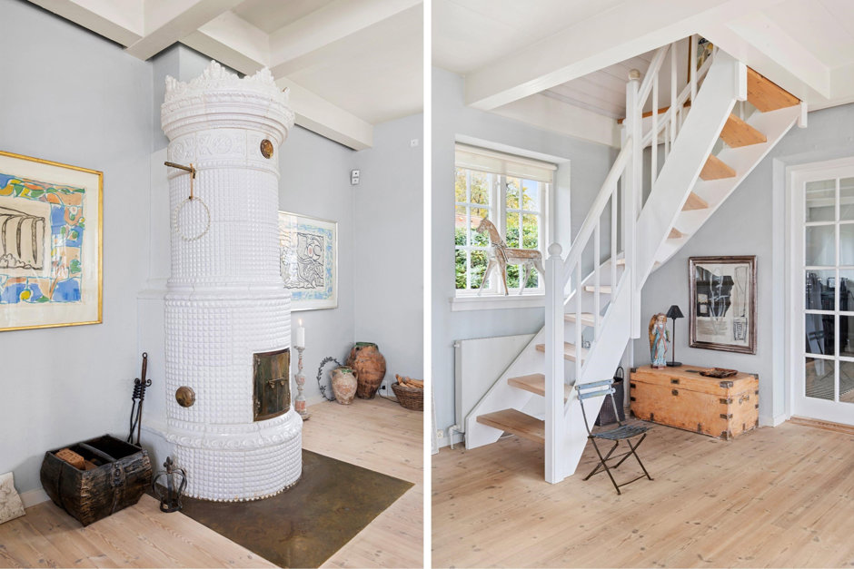 Spisekøkkenet er i åben forbindelse med den store smukke dagligstue med pejs til, at fuldende hyggen i de kolde måneder. Her er også svungen trappe til 1.salen, der byder på en repos, stort soveværelse med skabsvæg og karnap med skrivebord. Herudover er der endnu et stort soveværelse - Master Bedroom, ligeledes med skabe og adgang til stort lækkert badeværelse.