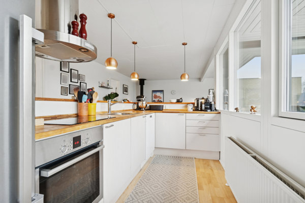 På adressen møder I den klassiske ejendom i bunden af det hyggelige kvarter. Der er god plads i boligen, som centrerer sig omkring køkken-alrummet, hvorfra der er to udgange til gårdhaven. Det store, åbne opholdsrum forener køkkenet og stuen, så I får følelsen af et åbent og luftigt miljø, hvor I kan være sammen på tværs af madlavning og øvrige sysler. Læg mærke til lyset, der strømmer ind gennem de vældige vinduespartier.