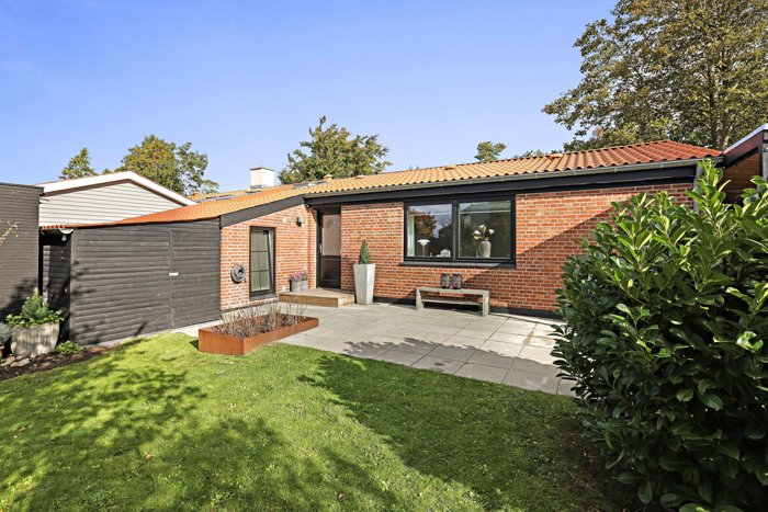 Grunden er på knap 700 kvadratmeter, hvilket giver mulighed for at udvide boligen, hvis behovet for mere plads opstår. Foran huset mødes I af en præsentabel indkørsel med carport, et praktisk udhus og en nydelig forhave med en hyggelig terrasse. Baghaven er helt ugeneret og byder på en stor plæne omgivet af randbeplantning samt en imponerende træterrasse på omkring 30 kvadratmeter, hvor sommeren kan nydes i læ og ro.