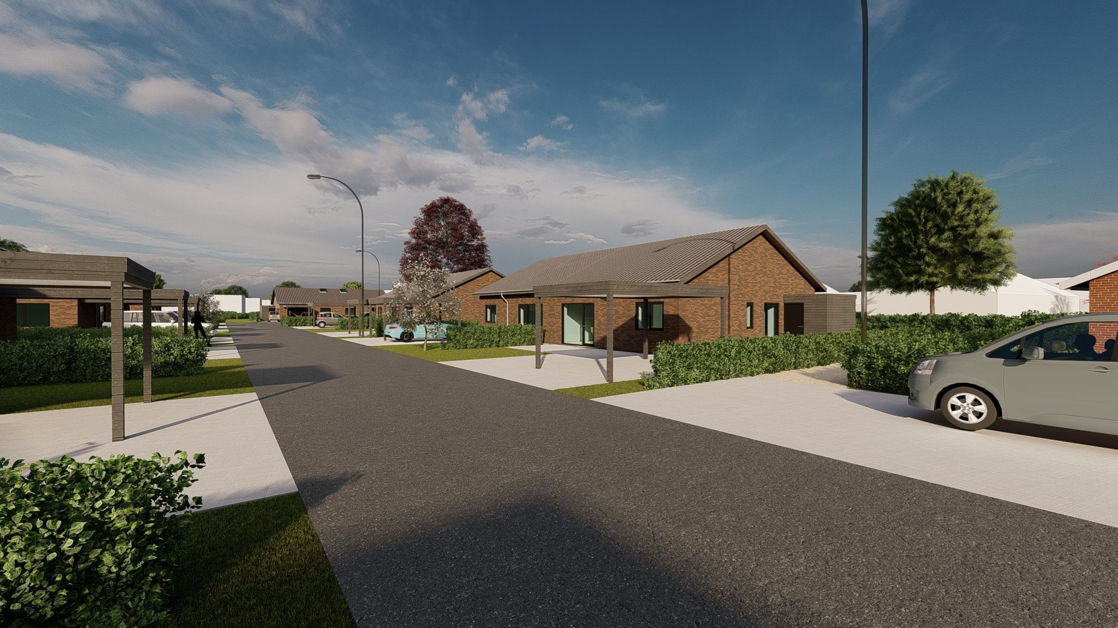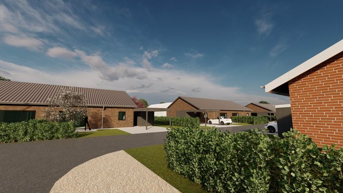 Nyt projekt bestående af 12 etplansboliger, fordelt på 6 dobbelthuse. Boligerne opføres af HS Byg A/S, Viborg. De 12 boliger er 120 m2, og det forventes, at de første boliger står færdig i 2. kvartal 2025, og herefter i øvrigt efter nærmere aftale, og med en forventet byggetid på ca. 4-5 måneder. Boligen indeholder (Model 1 - standard); Klinkebelagt entré med garderobe, bryggers med klinker og arbejdsbord/skabe, stue i åben forbindelse med køkken (i alt 50 m2) med inventar fra Svane og komplet med hvidevarer. Fra stue er der udgang til terrasse. Endvidere soveafdeling med badeværelse med brus og bord/skabsarrangement, soveværelse, 2 værelser. Der er i denne model mulighed for at lave et ekstra badeværelse (Model 2) jf. materialebeskrivelsen, imod merpris på kr. 50.000 eller et ekstra værelse (Model 3) jf. materialebeskrivelsen imod merpris på kr. 15.000. Mulighed for tilkøb af ovenlys for kr. 24.000 pr. vindue.