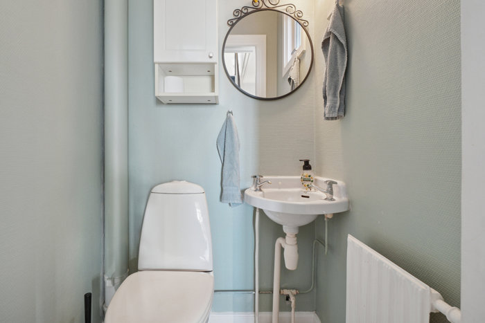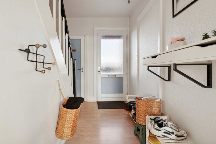 Der er et rummeligt og funktionelt køkken samt et gæstetoilet i stueetagen, mens førstesalen rummer boligens badeværelse samt to værelser. Ydermere får du ekstra brugbare kvadratmeter i kælderen, hvor tre disponible rum og et vaskerum er til rådighed.