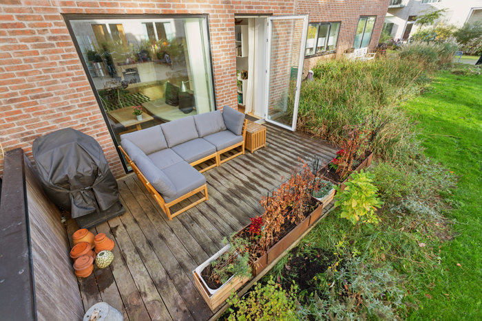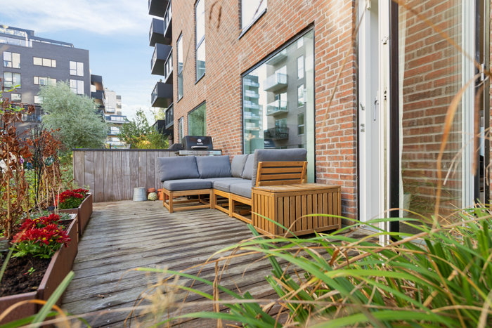 Huset er som skræddersyet til børnefamilien, der drømmer om mere plads og egen terrasse, men som ikke ønsker at vinke farvel til storbyen. I flytter ind i en ejendom fra 2017, og jeres nye hjem kommer altså med indbygget komfort, ligesom det kræver minimal vedligeholdelse. Indendørs er det stilrent design og lyse materialer, der løber fra stueplan til førstesal.