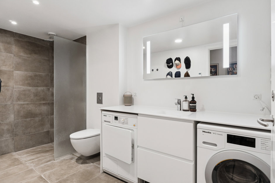 Badeværelser med toilet finder du både på 2 sal og i kælderen og der er ekstra toilet i stueetagen til gæster.