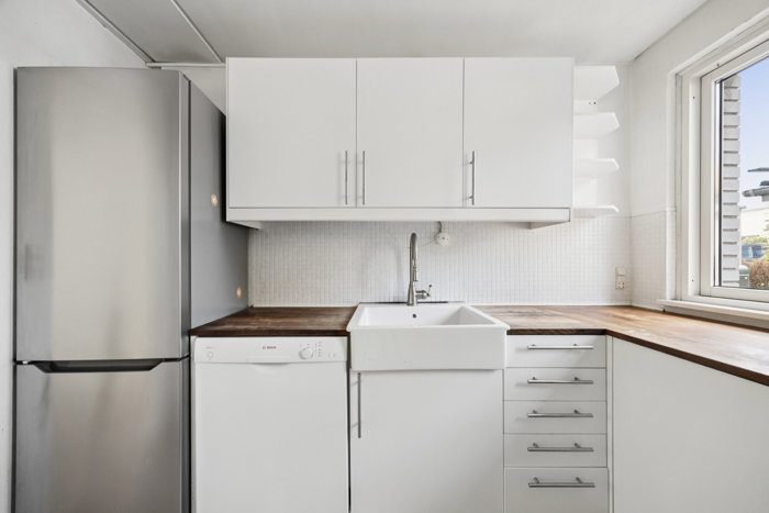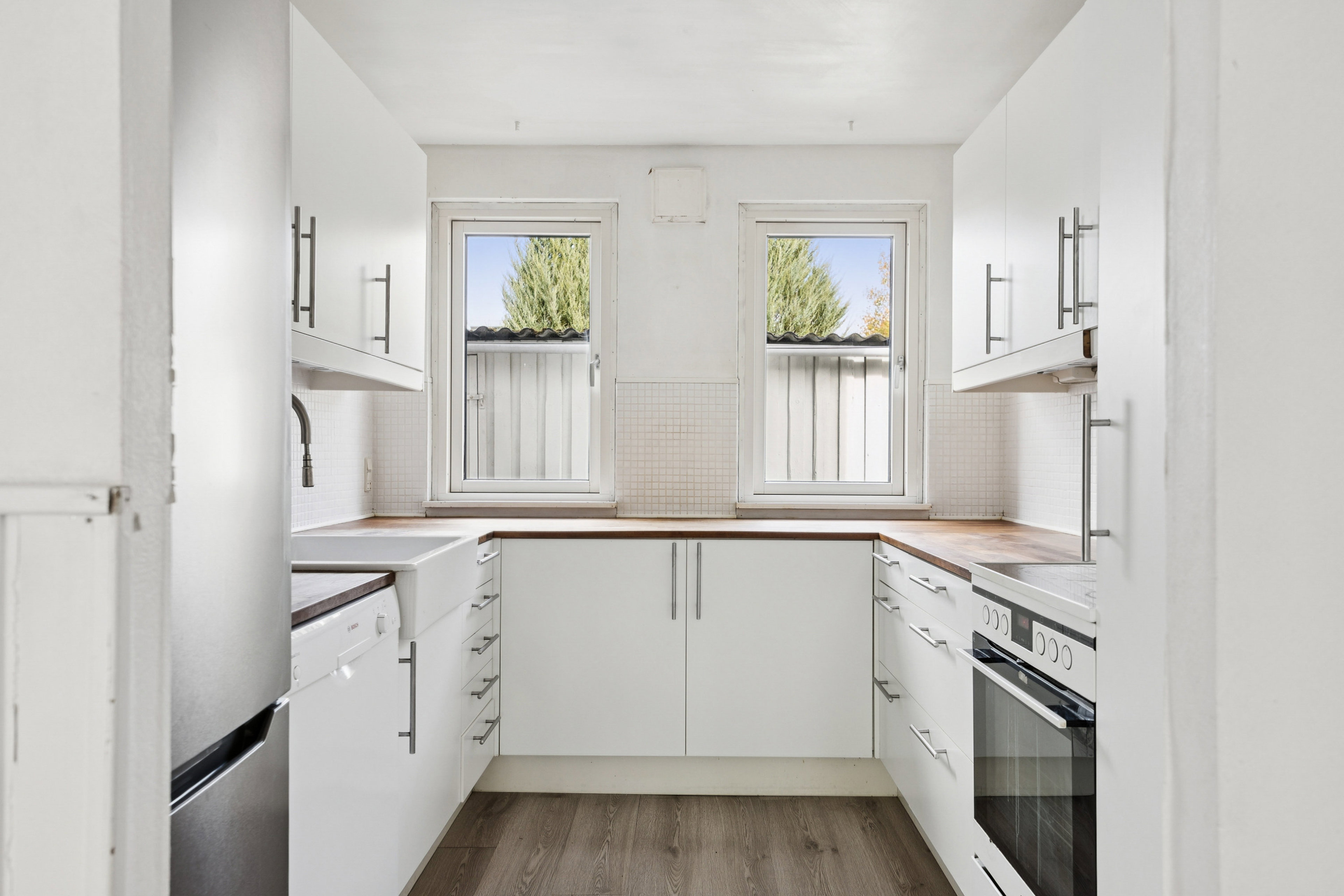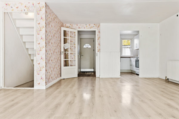 Ved ankomsten bliver I budt velkommen af en indbydende og rummelig entré, der ligeledes byder på et fint gæstetoilet. Herfra træder I ind i det fine køkken-alrum, som er praktisk indrettet med masser af plads til hele familien. Fra stuen er der også direkte udgang til et fint lille haveareal. Der er ingen naboer overfor som kan kigge direkte ind, hvilket gør haven dejlig privat.