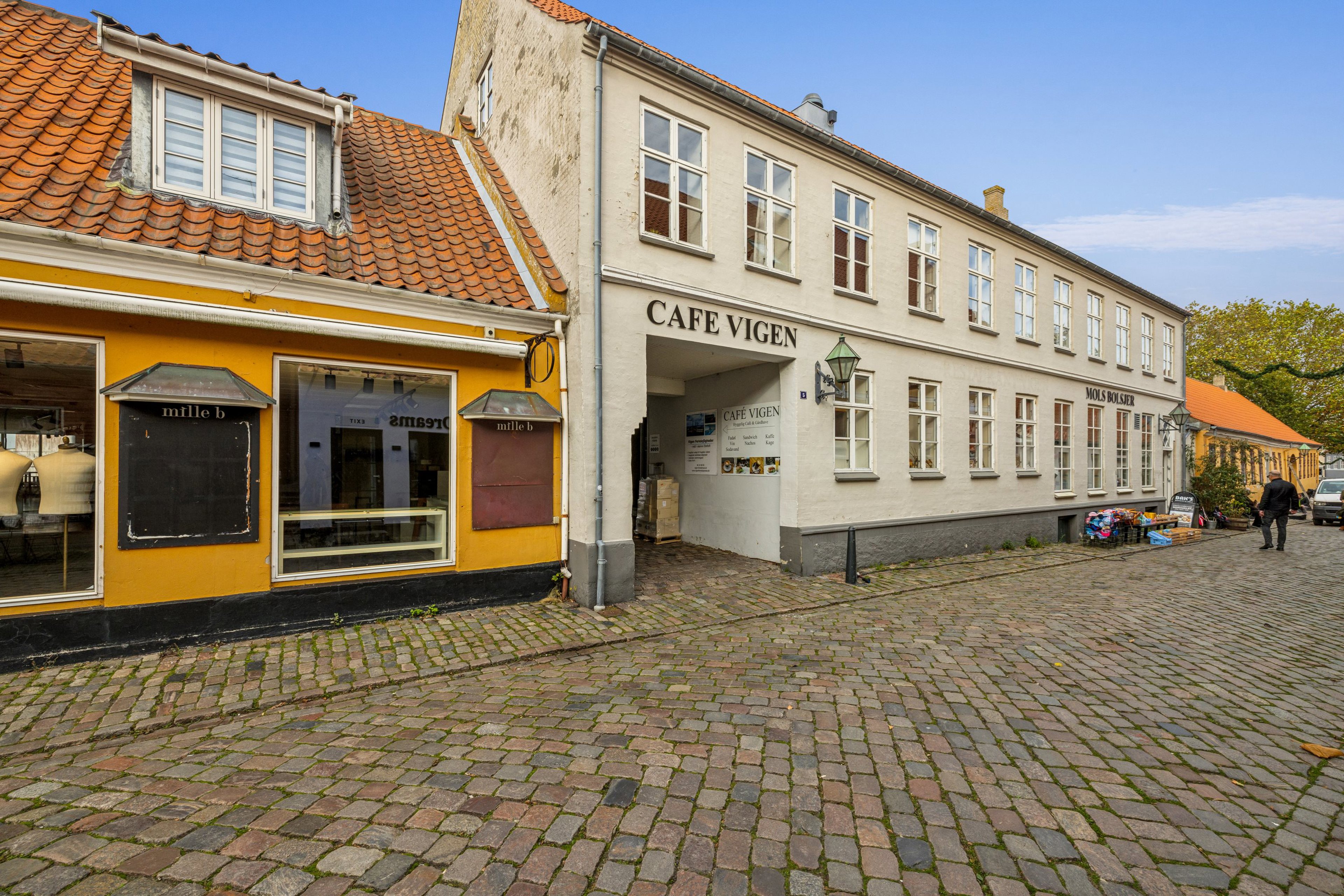 Jeres ferielejlighed er beliggende helt centralt ud til "Det Gamle Rådhus", og den skønne gågade, forretninger, og hyggelige caféer / restauranter, hvilket også betyder, at I kan gå til havnen og det historiske skib "Fregatten Jylland" på fem minutters tid. I ankommer via den brobelagte gårdhave, hvor ejendommens café serverer kaffe, øl og lette frokoster. De fine ferielejligheder i komplekset ligger enten med udsigt til gågaden, gårdhaven eller ud over Ebeltoft Vig. I tilknytning til lejlighederne er der udsøgte fællesarealer der byder på både indendørs swimmingpool, solarium, bordtennis og vaskefaciliteter. Lejlighederne er populære at leje ud, men I kan også vælge at indrette jer med en privat feriebolig der kan benyttes hele året.