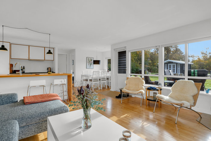 Med en beliggenhed i gåafstand til Skødshoved Strand kan I hurtigt komme ned til vandet og nyde udsigten over Kalø Vig og selve Aarhusbugten. Det er et enormt naturskønt og fredeligt område, så I kan nyde vandreture i Mols Bjerge eller tage cyklen på eventyr langs de små, rolige veje. Samtidig er der mindre end en times kørsel til Aarhus C, så I kan nemt tage en afstikker, når I trænger til kulturelle eller kulinariske input.