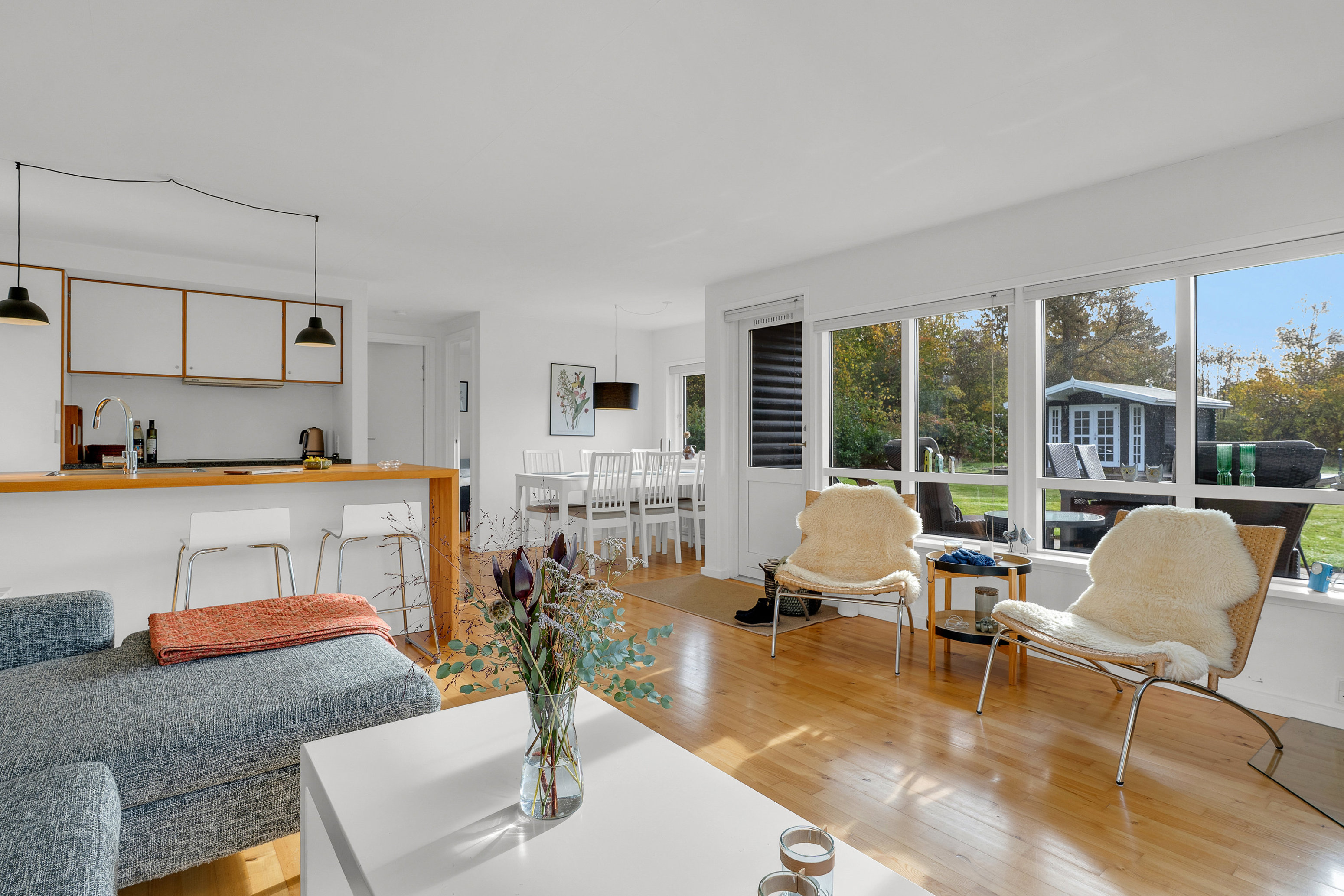 Endelig er der et udhus på 6 m2 og godt udhus på 14 m2 med elvarme, der er holdt i samme charmerende stil som selve huset. Her får I lidt ekstra plads i en rigtig god kvalitet.