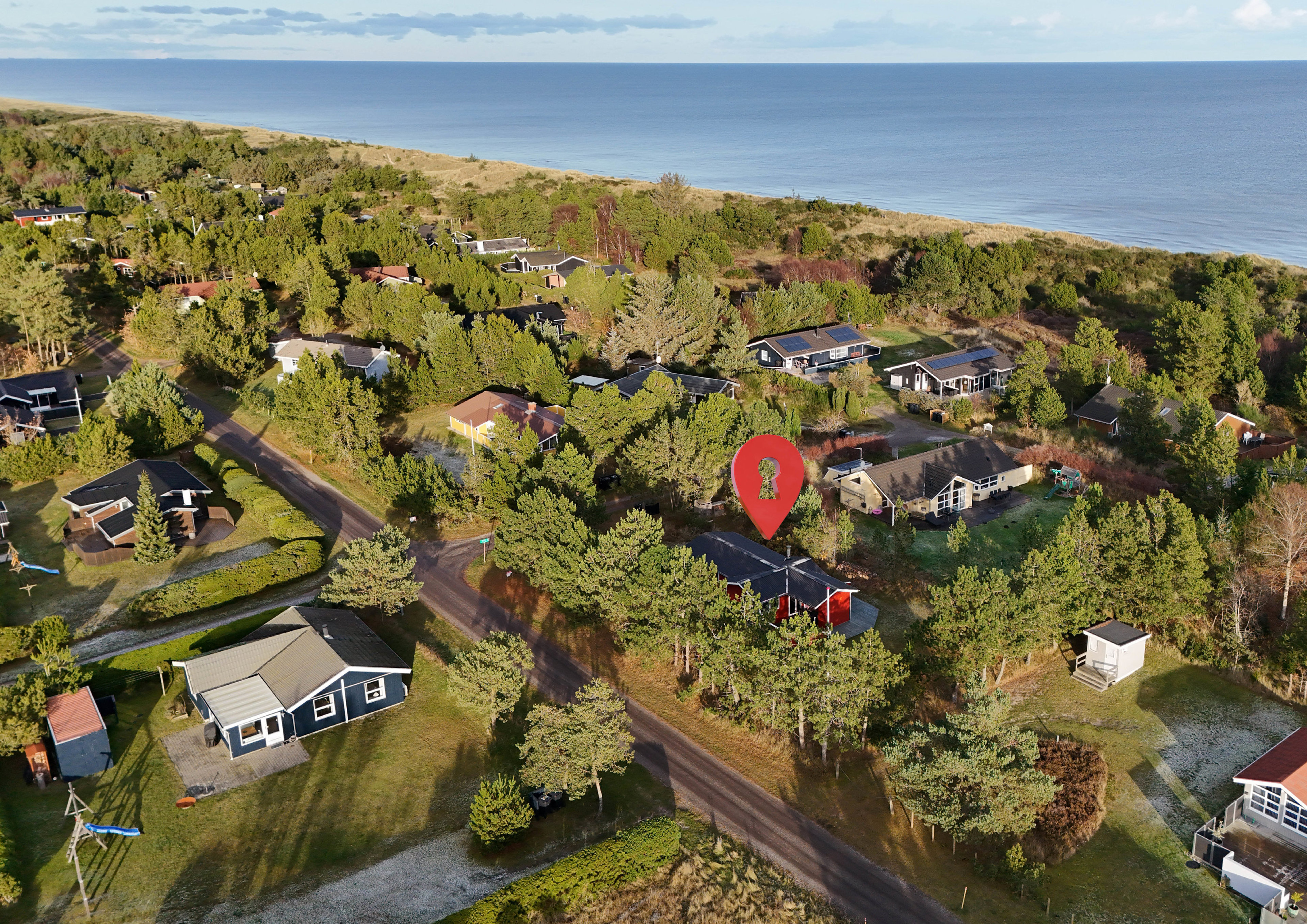 Her får du en fredelig base midt i naturen, blot 140 meter fra klitter og en bred, børnevenlige badestrand. Et sted, hvor du kan nyde både det rolige sommerhusliv og de mange muligheder for aktiv fritid, med naturen og havet helt tæt på.