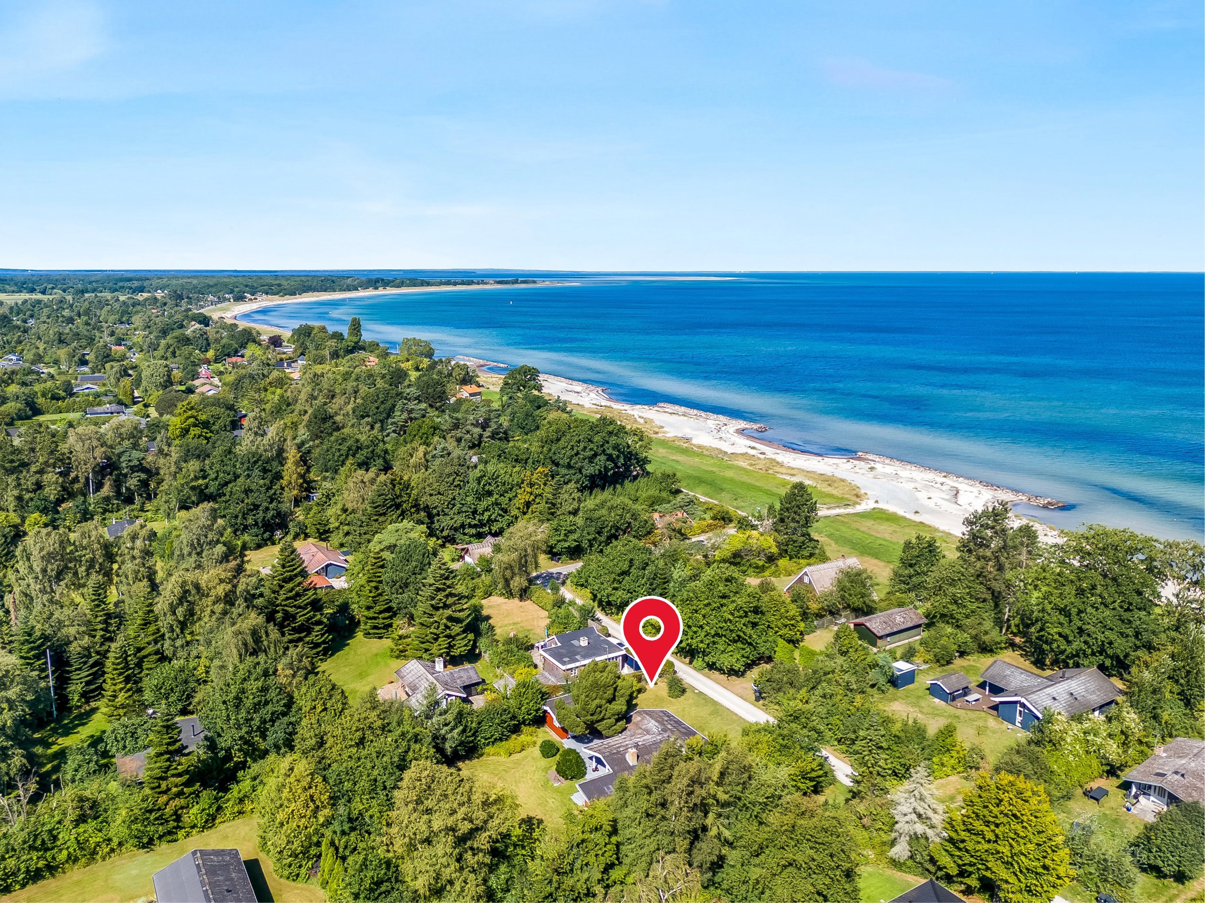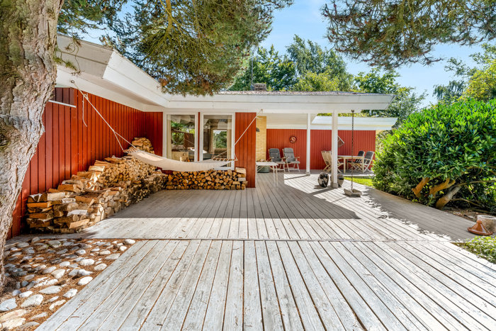 Allerede fra haven fornemmer man roen – her er man omgivet af en dejlig, sydvendt grund på 1.305 m², der indbyder til udeliv, leg og hyggelige sommeraftener. Fra huset er der blot 170 meter til den brede sandstrand, hvor du kan nyde morgenkaffen med fødderne i vandkanten eller tage en frisk dukkert i Østersøen.