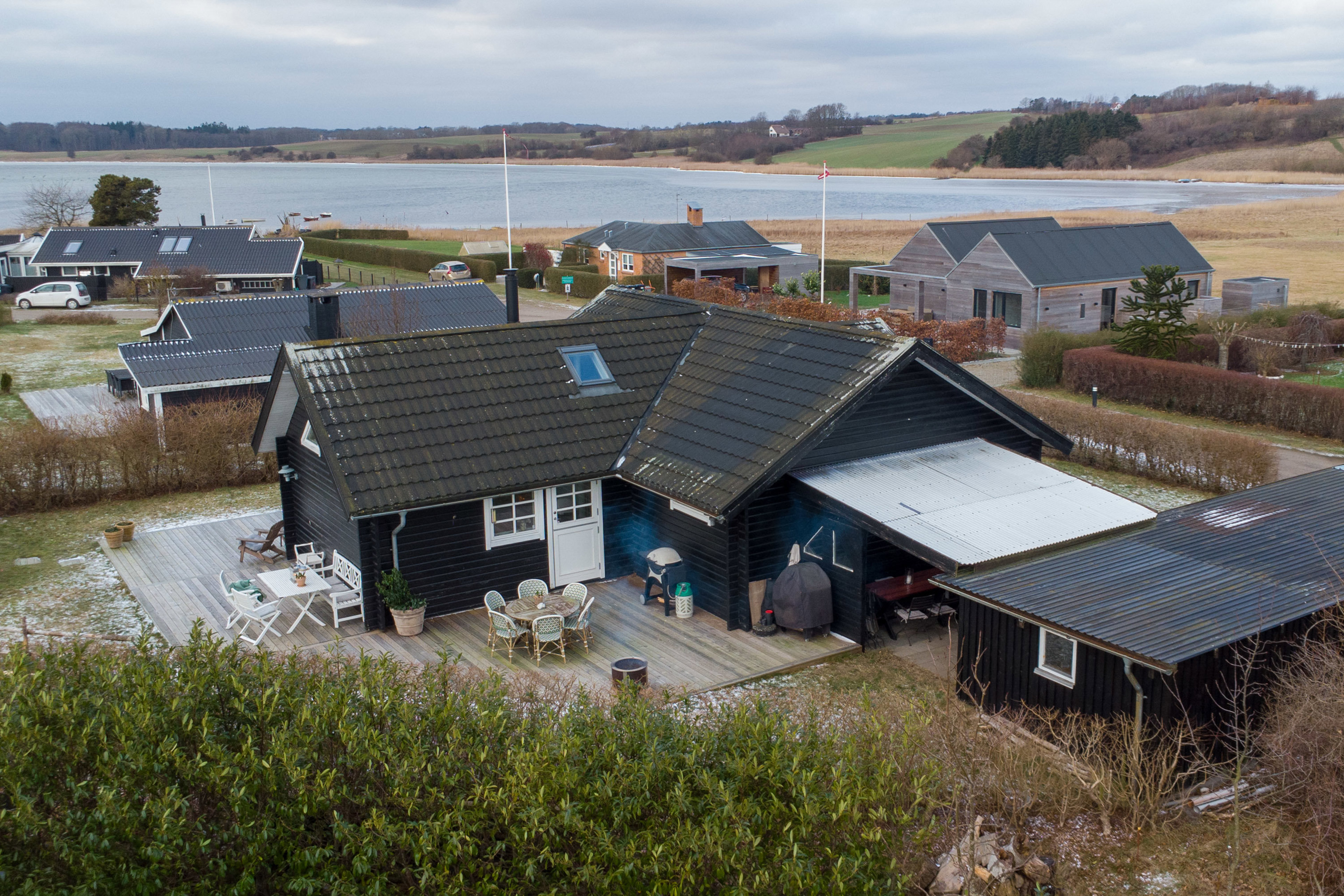 Fra køkken-/alrummet og stuen er der direkte udgang til en af de mange skønne terrasser. Terrassen løber rundt om huset og er etableret i 2024, hvilket giver optimale solforhold hele dagen og masser af plads til ophold. I forlængelse heraf findes overdækket terrasse, skur og carport samt et hyggeligt og isoleret anneks med plads til dobbeltseng.