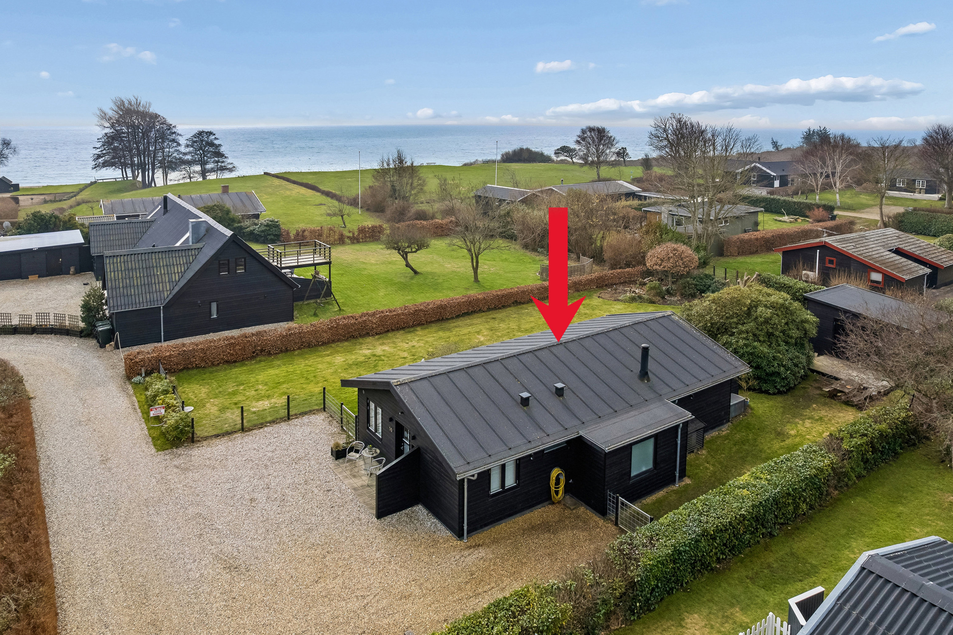 Ejendommen ligger for enden af en lukket vej, hvilket skaber en særlig privat og fredelig atmosfære, hvor du virkelig kan koble af og nyde omgivelserne. Med kun ca. 150 meter til en af områdets bedste sandstrande er der rig mulighed for daglige gåture langs vandet, en frisk dukkert eller afslapning i solen med udsigt over havet.