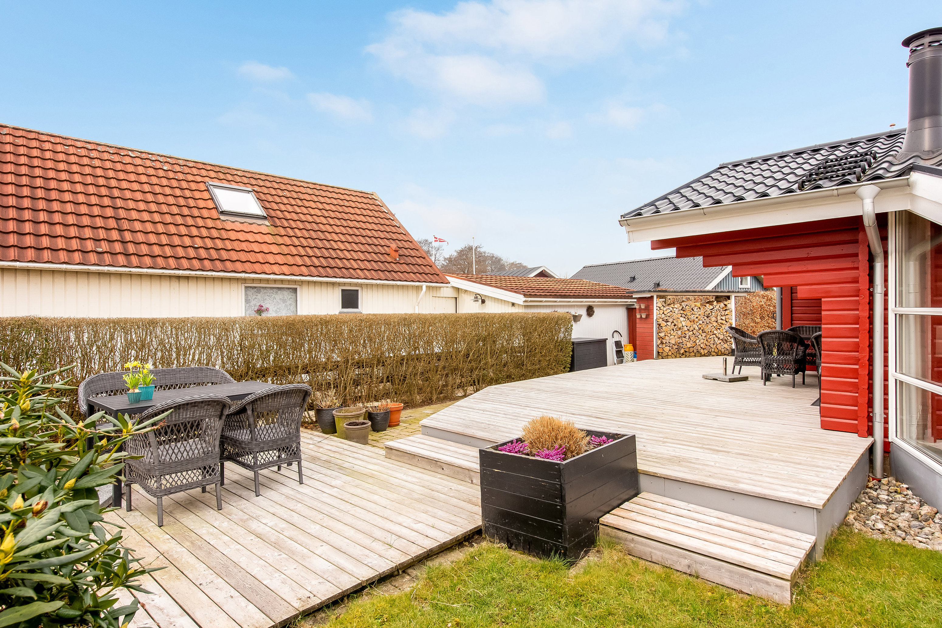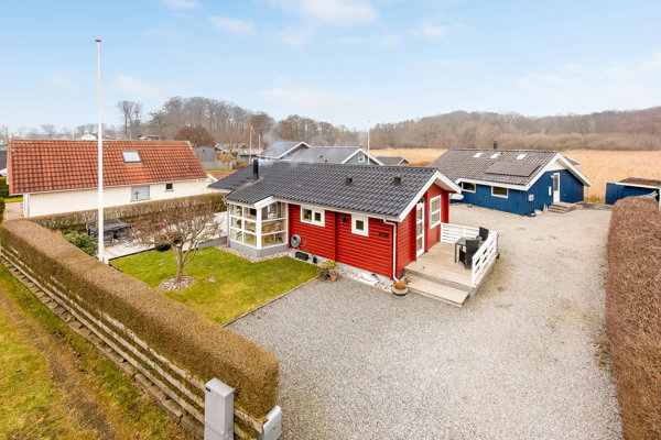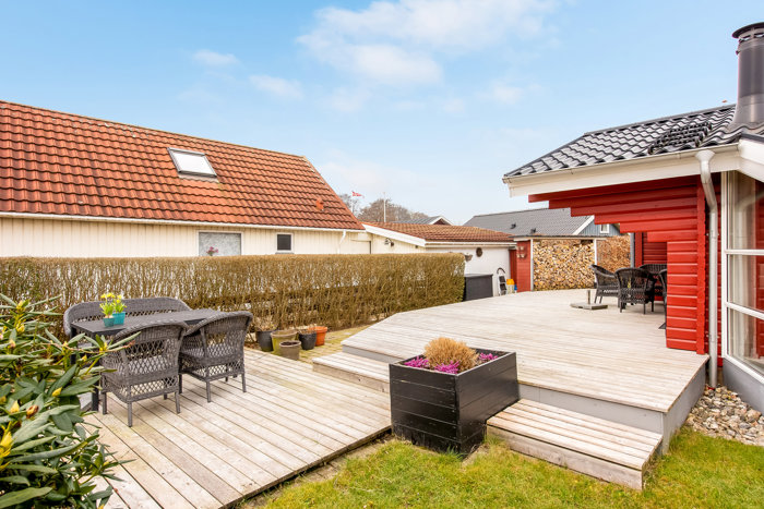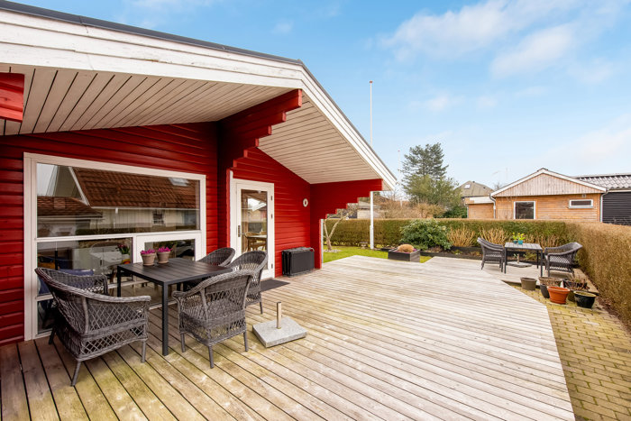 Charmerende sommerhus med skønt terrassemiljø nær Hejsager Strand