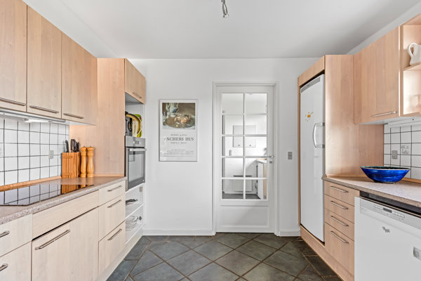 Køkkenet ligger i åben forbindelse til opholdsområdet og er praktisk placeret med adgang til bryggerset, der giver ekstra funktionalitet og plads til opbevaring samt vaskefaciliteter. Fra bryggerset er der desuden adgang til et disponibelt rum, som i dag er indrettet med bordtennisbord og giver gode muligheder for leg, aktivitet og ekstra opholdsrum. I stueplan findes desuden et værelse samt et badeværelse, hvilket giver en fleksibel indretning og gode muligheder for både familie og gæster.