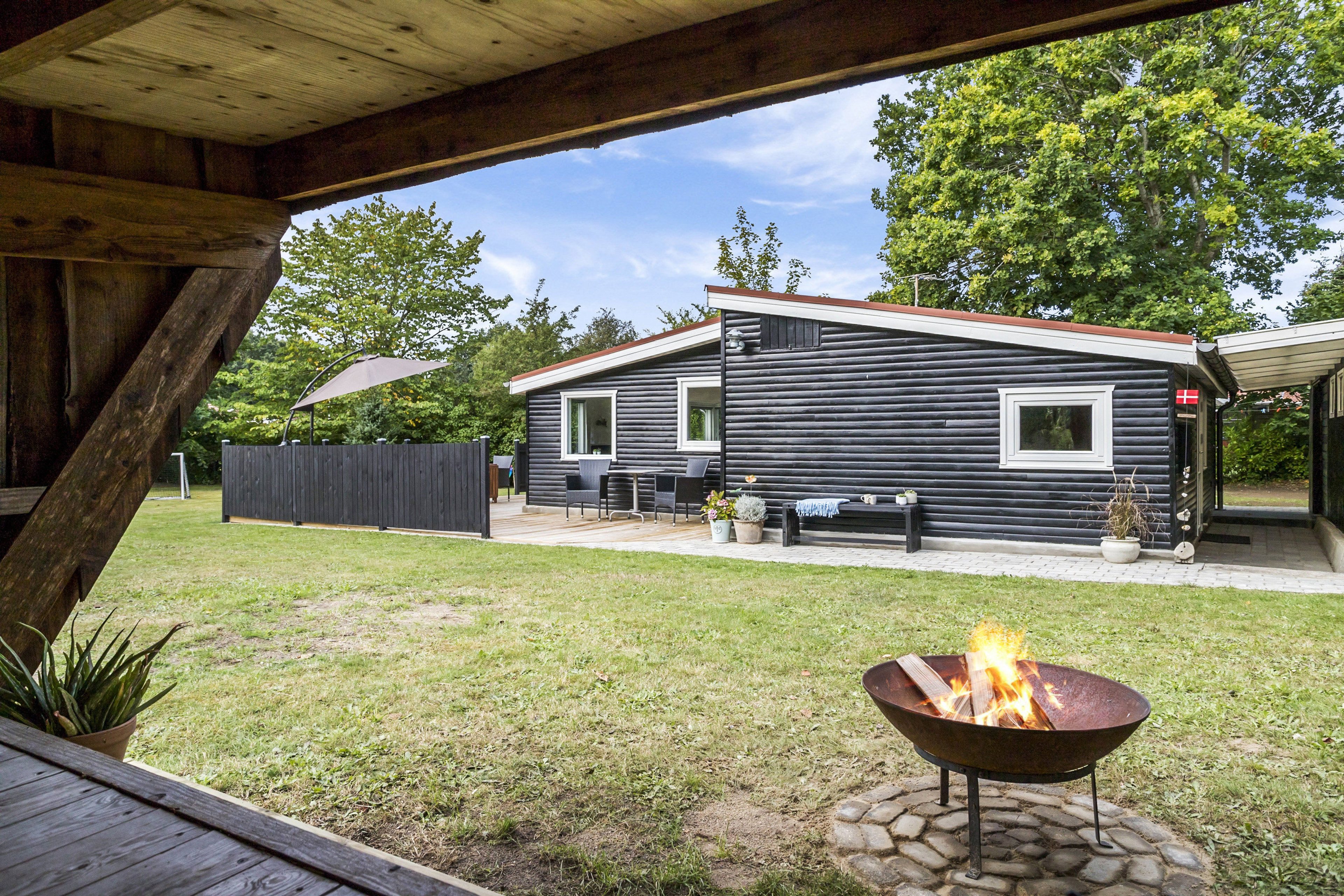 Udendørs venter en skøn grund med gode terrasser, hvor solen kan nydes dagen igennem. Her er der rig mulighed for at skabe små oaser til både morgenkaffen, grillmiddage og afslapning i fredelige omgivelser – alt sammen omgivet af den rolige natur, som kendetegner området.