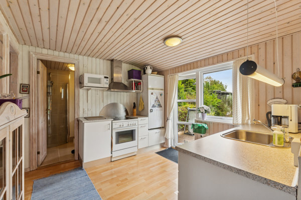 I fritidsboligens nærområde er gode gode muligheder for gå- og cykelture i området, og man befinder sig kun en kort køretur fra både Hou by, hvor man finder dagligvarebutikker og øvrige faciliteter.