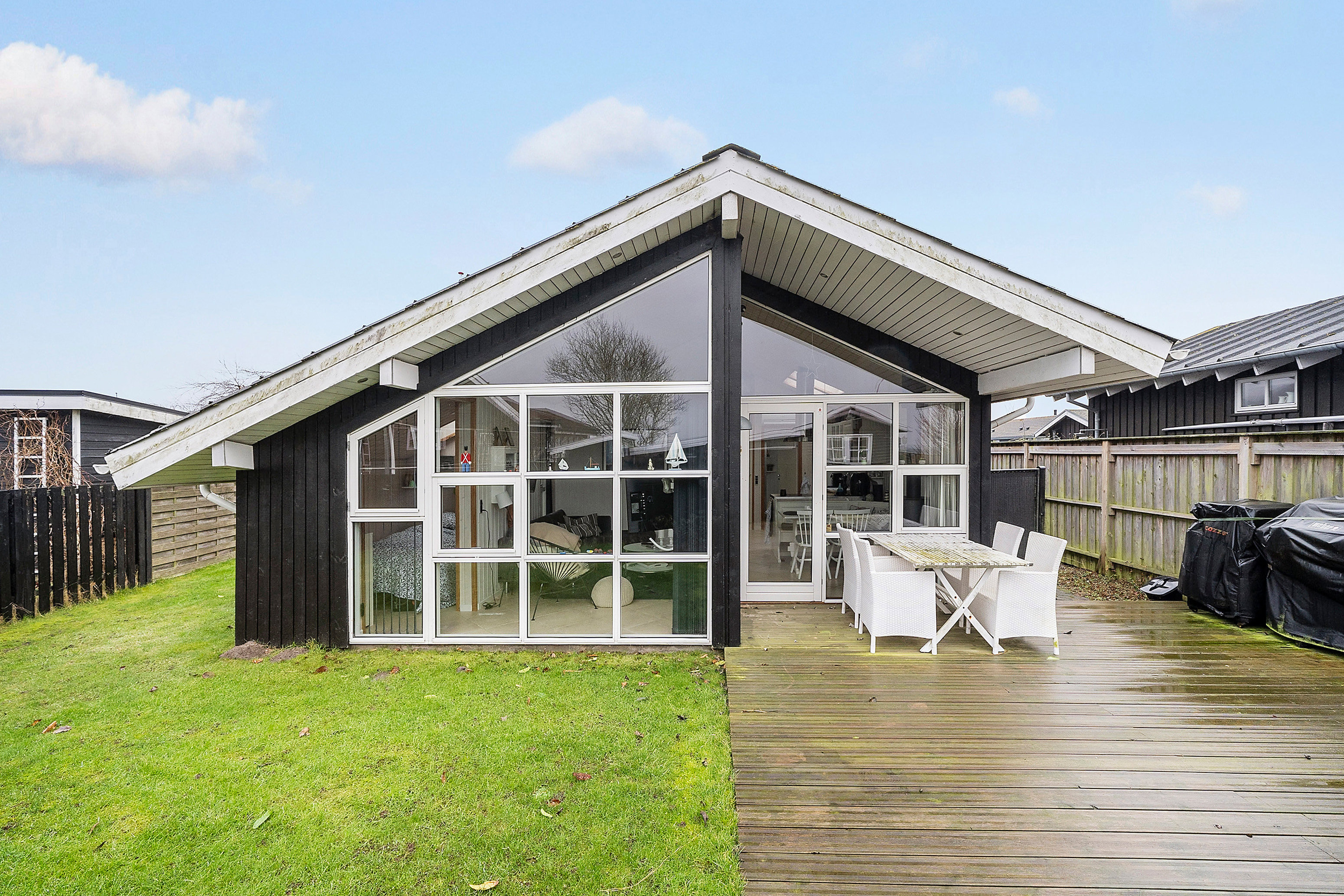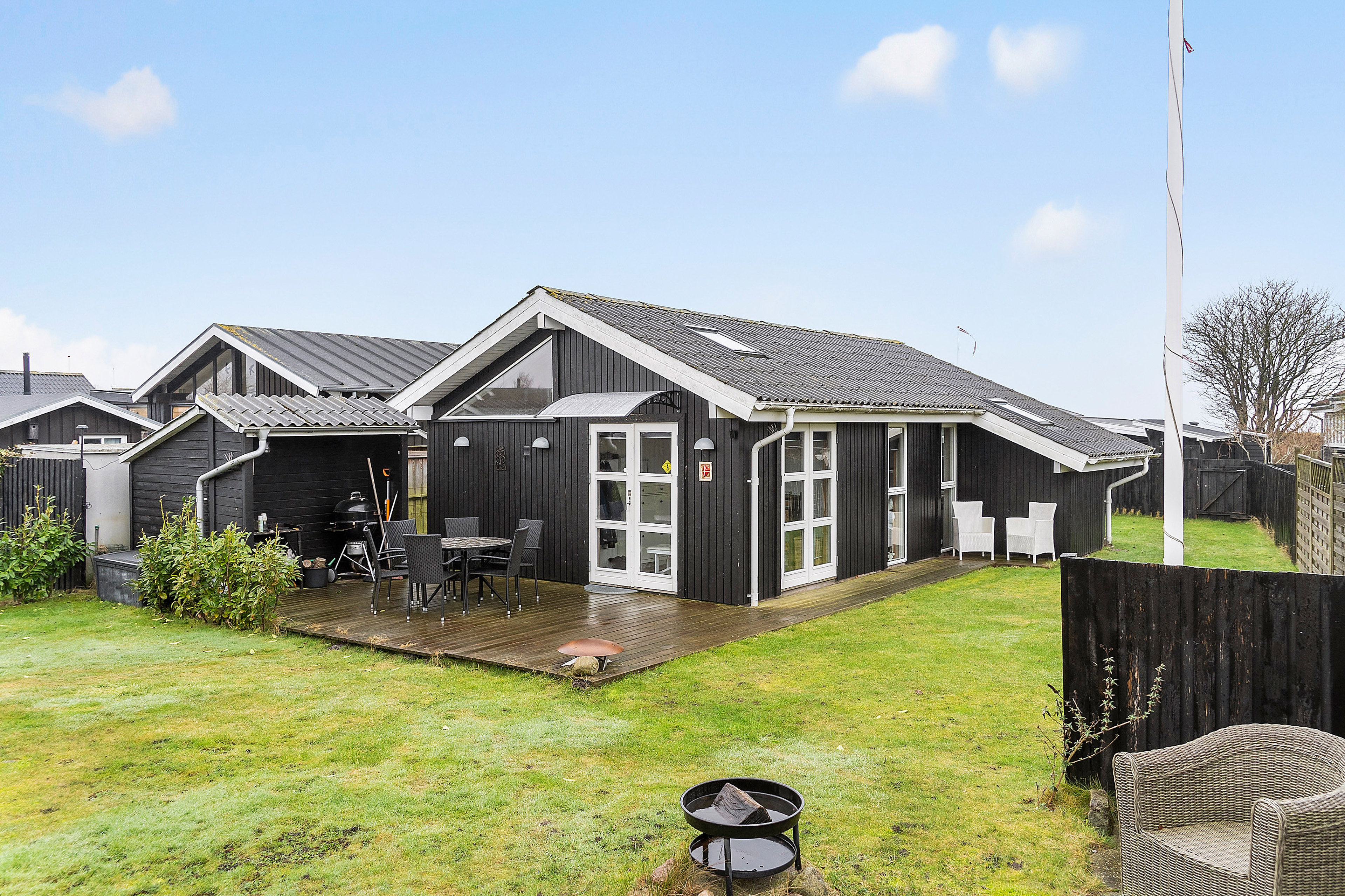 Sommerhuset ligger på en hyggelig og let anlagt grund, hvor de 2 skønne træterrasser er i centrum.