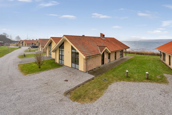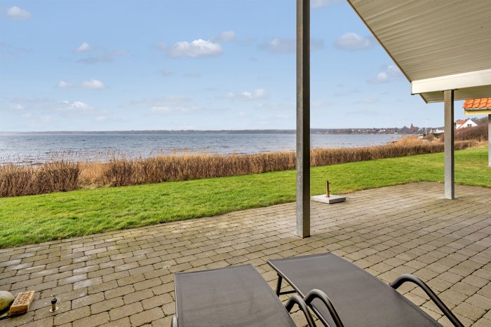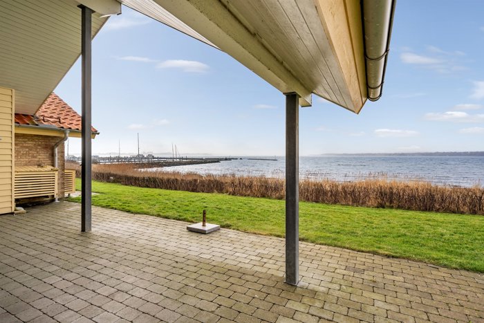 De store vinduespartier mod fjorden sikrer et imponerende lysindfald og skaber en flot forbindelse mellem ude og inde. Udvendigt fremstår huset med tegltag, solidt murværk samt trævinduer og -døre, der understreger den gedigne kvalitet. Grunden har flisegang rundt om huset, en herlig bonus som ikke ses så ofte i området.