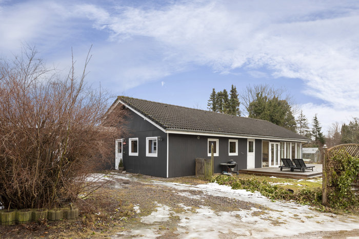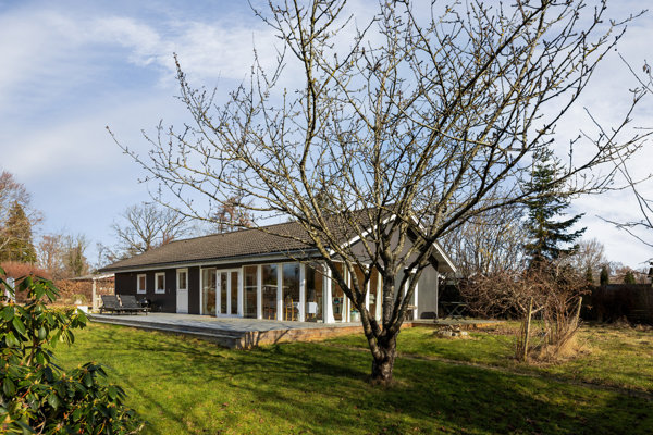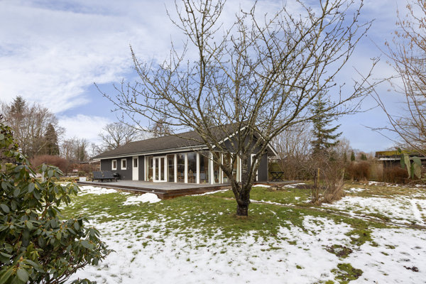 Huset er til- og ombygget omkring 2002 og fremstår lyst, moderne og lige til at tage i brug. Indenfor åbner rummene sig generøst med masser af plads til en aktiv familie. Køkkenet er husets naturlige samlingspunkt – nyere, lækkert og med spiseplads i åben forbindelse til stuen, hvor brændeovnen skaber hygge på kølige dage. Herfra fortsætter den åbne rumfornemmelse videre ind i den store havestue på 25 m², hvor lyset strømmer ind, og terrassen ligger som en naturlig forlængelse af opholdsrummene.