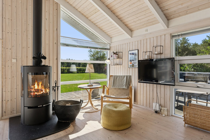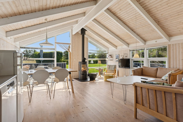 Fritidshuset er fra år 2000 med en varm og indbydende atmosfære. Den 53 kvadratmeter bolig byder på en velindrettet stue og køkken i et med nyere brændeovn og loft til kip. Her er det ikke kun rummelighed du får, men rummet er også designet med fokus på både familiehygge og funktionalitet. Dette centrale rum bliver hjertet i huset, hvor familiemedlemmer kan samles og skabe gode minder sammen.