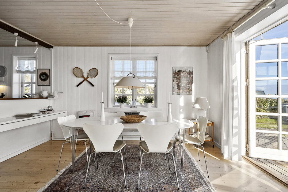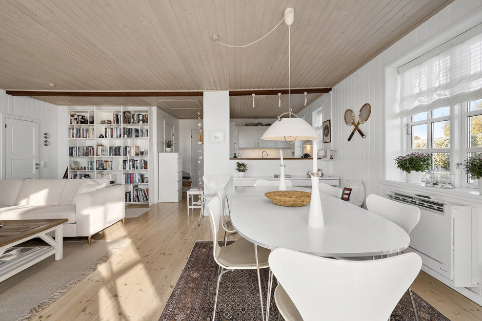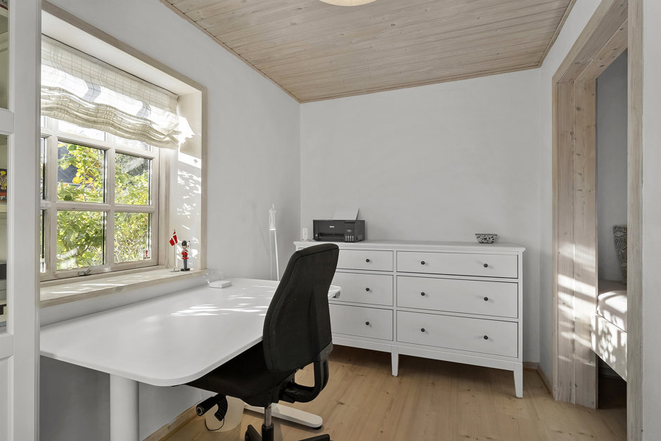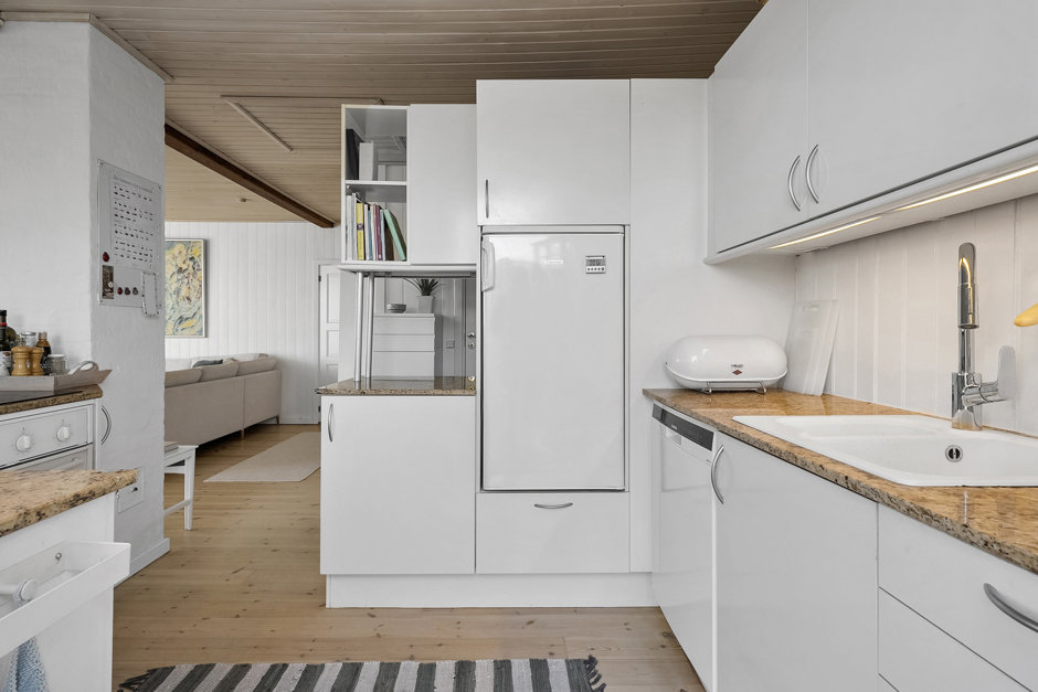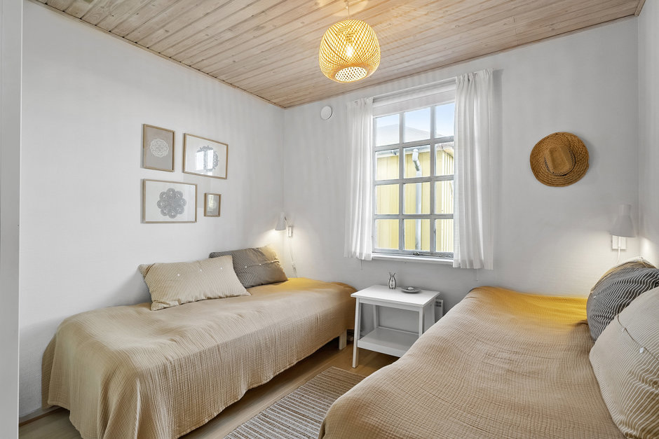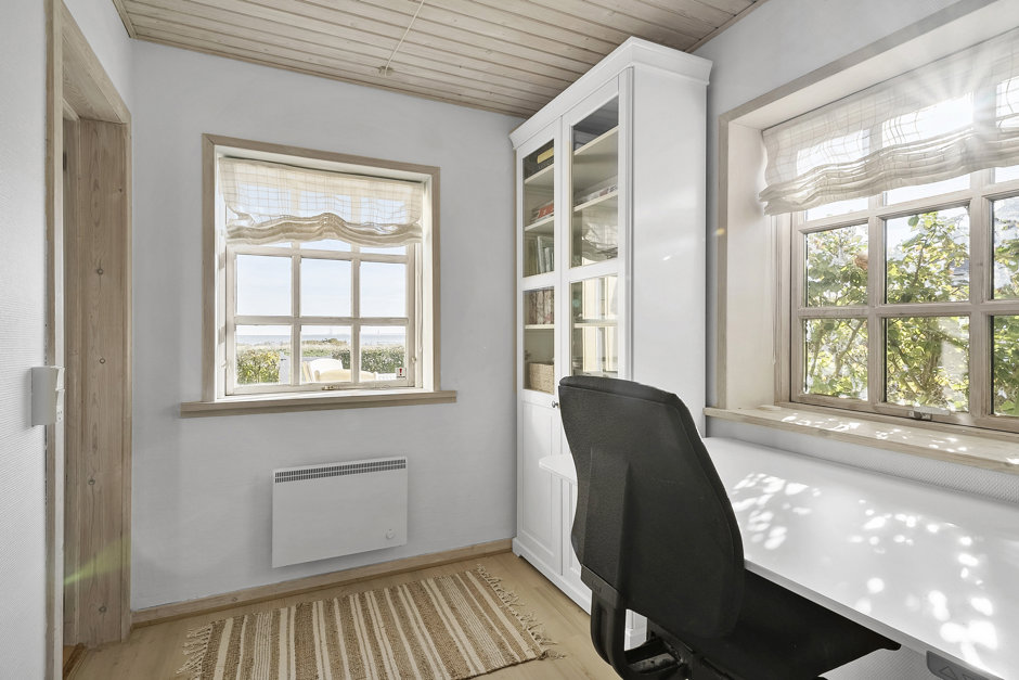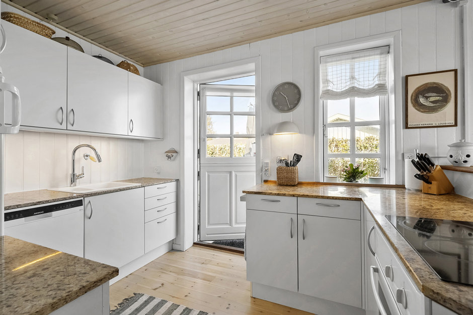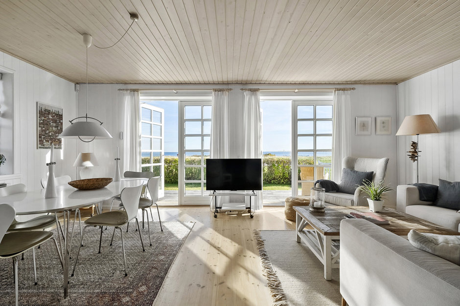 Indendørs er huset løbende moderniseret og fremstår lyst, funktionelt og indbydende. Det åbne køkken ligger i direkte forbindelse med stuen, hvilket skaber en naturlig ramme for samvær og feriehygge. Der er i alt syv sovepladser fordelt på fire værelser, hvilket gør huset velegnet til både familien og gæster.