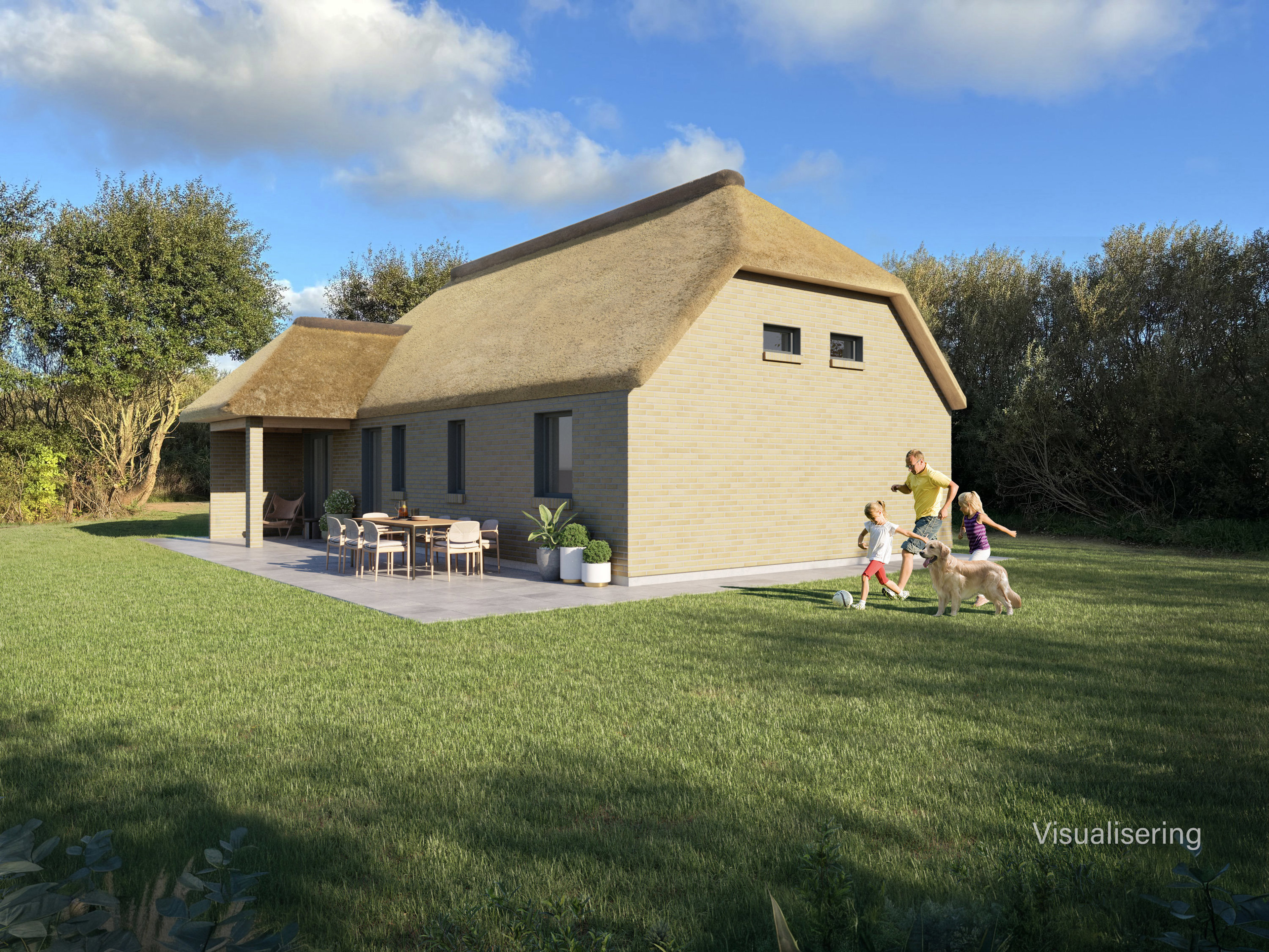 Sommerhuset opføres i: blødstrøgne mursten, træ/alu-energiruder og smukt stråtag. Indvendigt er der lagt vægt på både funktionalitet og æstetik med lyse rum, gulvvarme overalt og loft til kip, der giver en helt særlig rumfornemmelse. Lofterne beklædes med Troldtekt-plader, som sikrer et behageligt akustisk miljø.