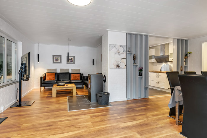 Boligen byder på en ideel planløsning til både eget brug og udlejning. Med hele seks gode soveværelser er der rigeligt med plads til den store familie eller flere familier, der holder ferie sammen. De rummelige fællesarealer indbyder til samvær og hyggelige stunder, og den lyse opholdsstue med brændeovn skaber en varm og indbydende atmosfære året rundt. Køkkenet fremstår pænt og funktionelt med god plads til madlavning og fællesskab.