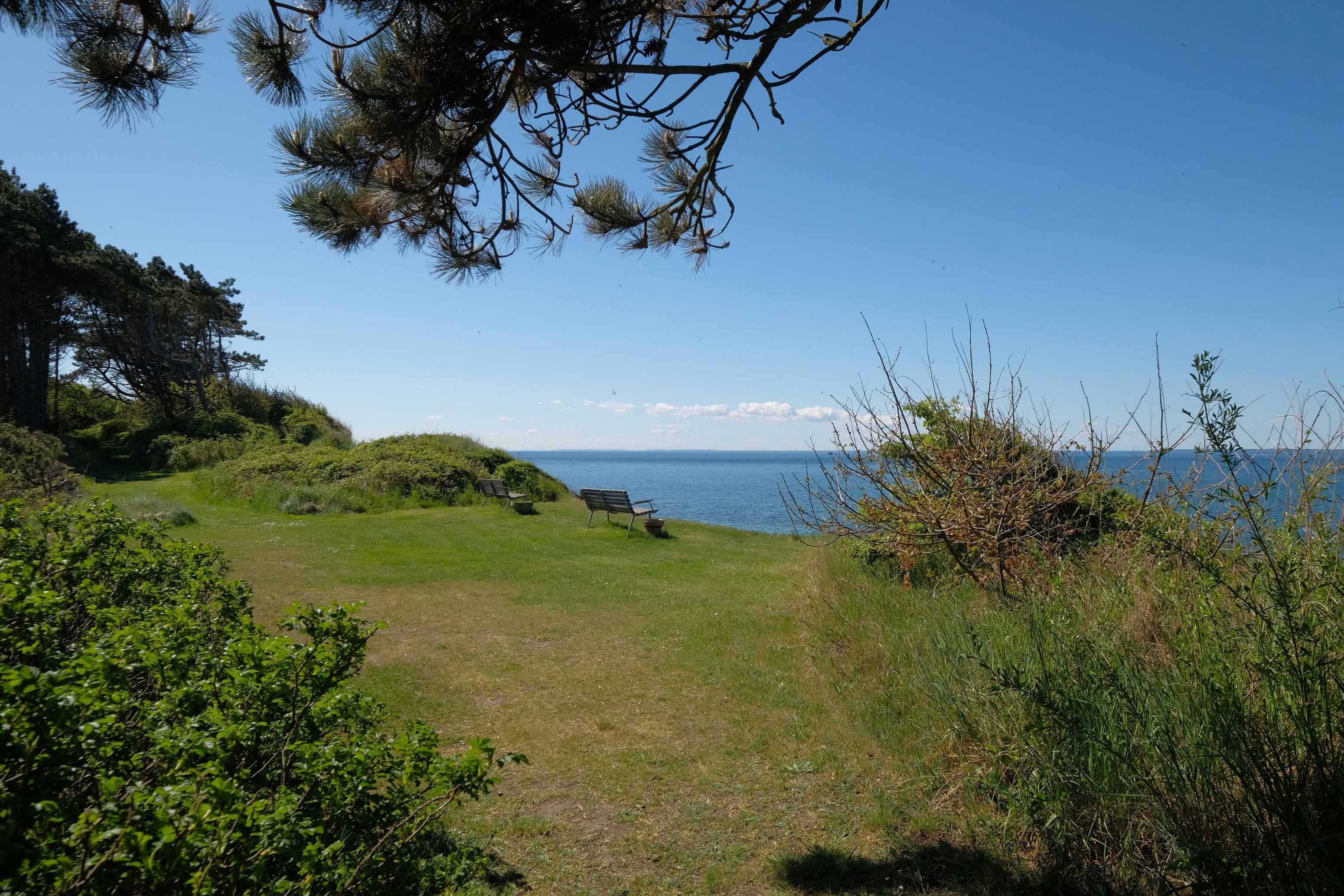 Her bor I hævet over hverdagen med få hundrede meter til stranden og den lokale badebro. En kort spadseretur bringer jer helt tæt på vandet, mens hjemkomsten altid føles som at komme op i sit eget private udkigspunkt. Udsigten er ganske enkelt betagende. Fra huset og terrasserne åbner horisonten sig mod syd og vest med havet som konstant følgesvend – og med Jylland, Endelave og Fyn som stille silhuetter i det fjerne.