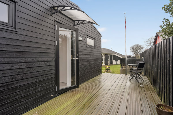 Sommerhuset ligger på en hyggelig og let anlagt grund, hvor de 2 skønne træterrasser er i centrum.