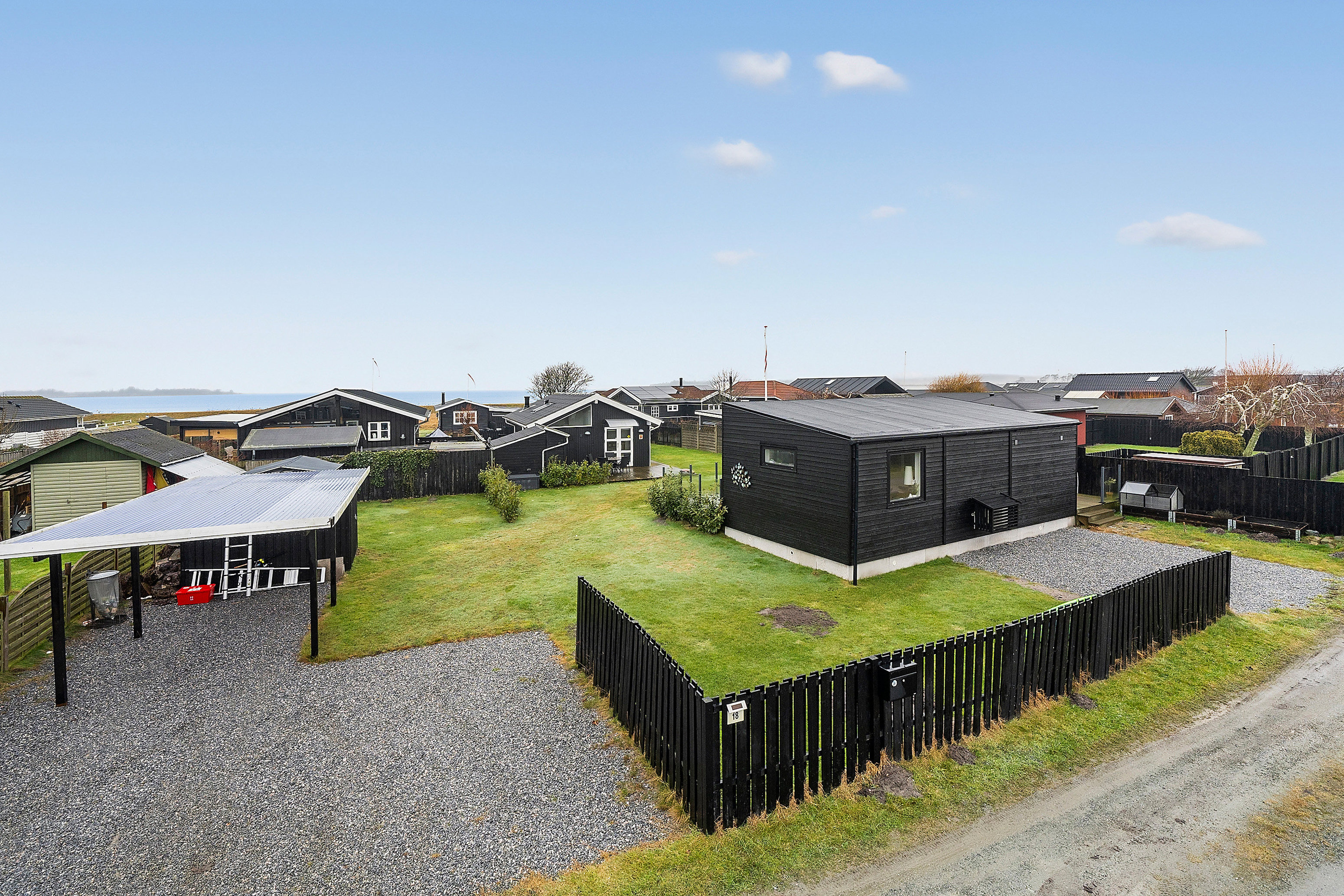 Der er gode parkeringsmuligheder, både foran sommerhuset, samt i den tilhørende carport med indbygget redskabsrum.