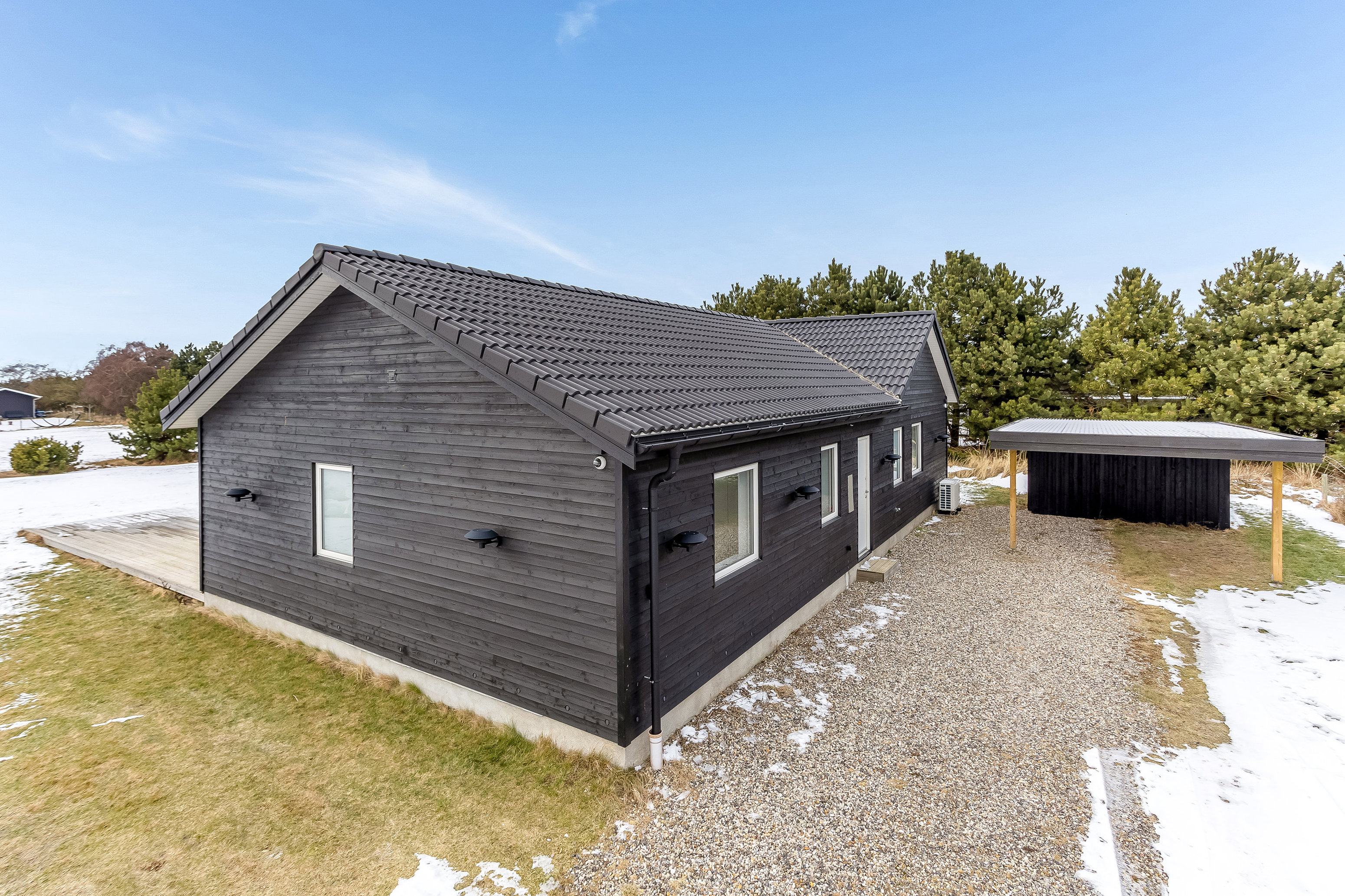 Grunden byder på en stor sydvestvendt terrasse med direkte udgang fra stuen, hvor udelivet let integreres med husets opholdsrum. Her er god plads til spiseområde, grill og afslapning, og den rummelige grund giver mulighed for leg, boldspil og ophold i det fri.