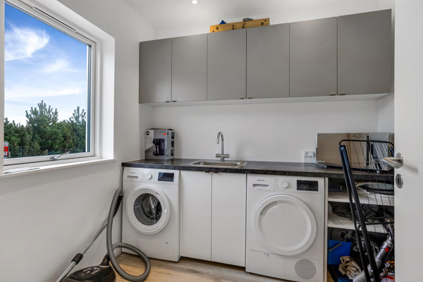 Huset rummer hele 6 soverum, fordelt i to separate afdelinger, hvilket giver fleksible muligheder for både familie og overnattende gæster.