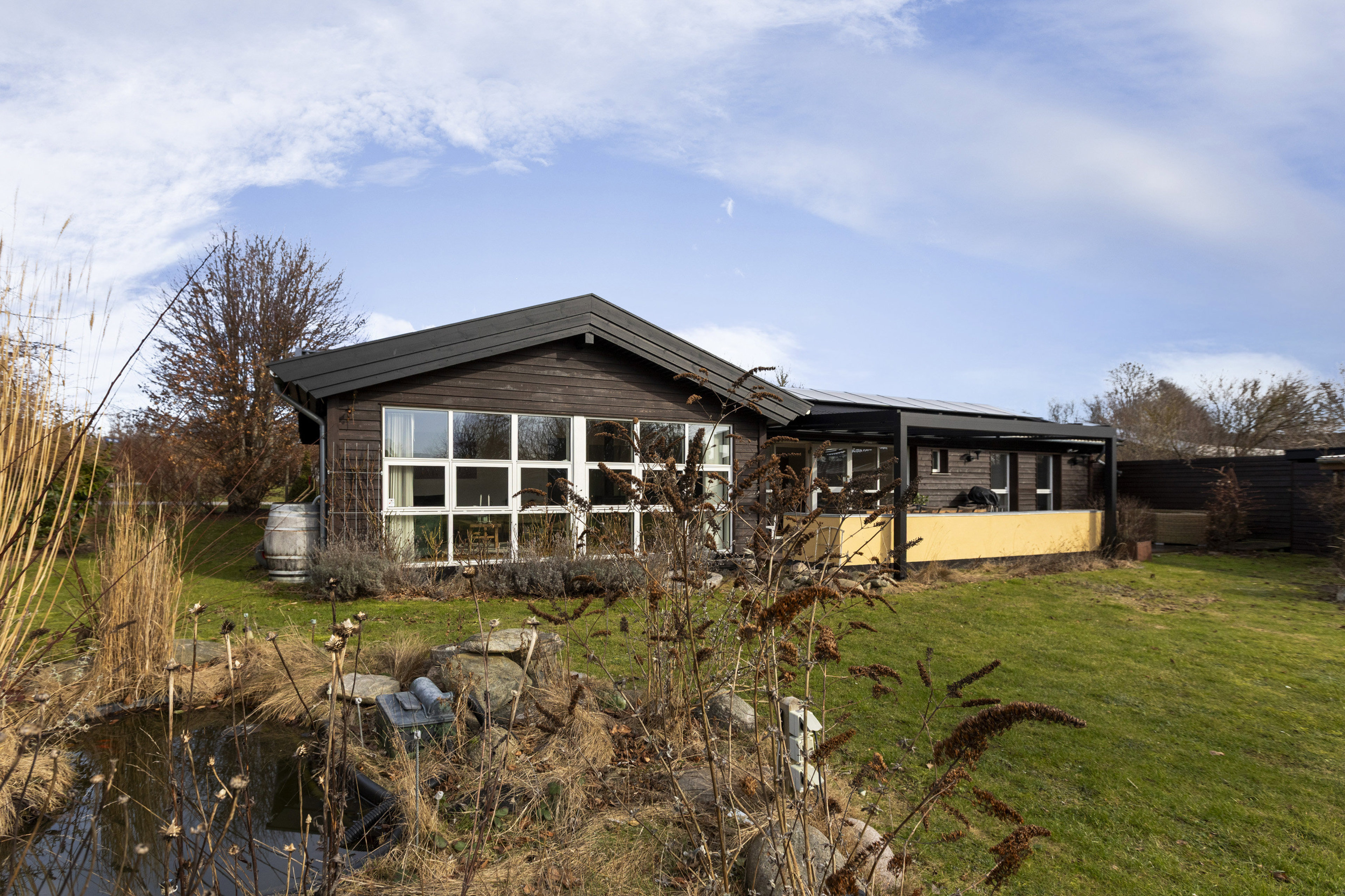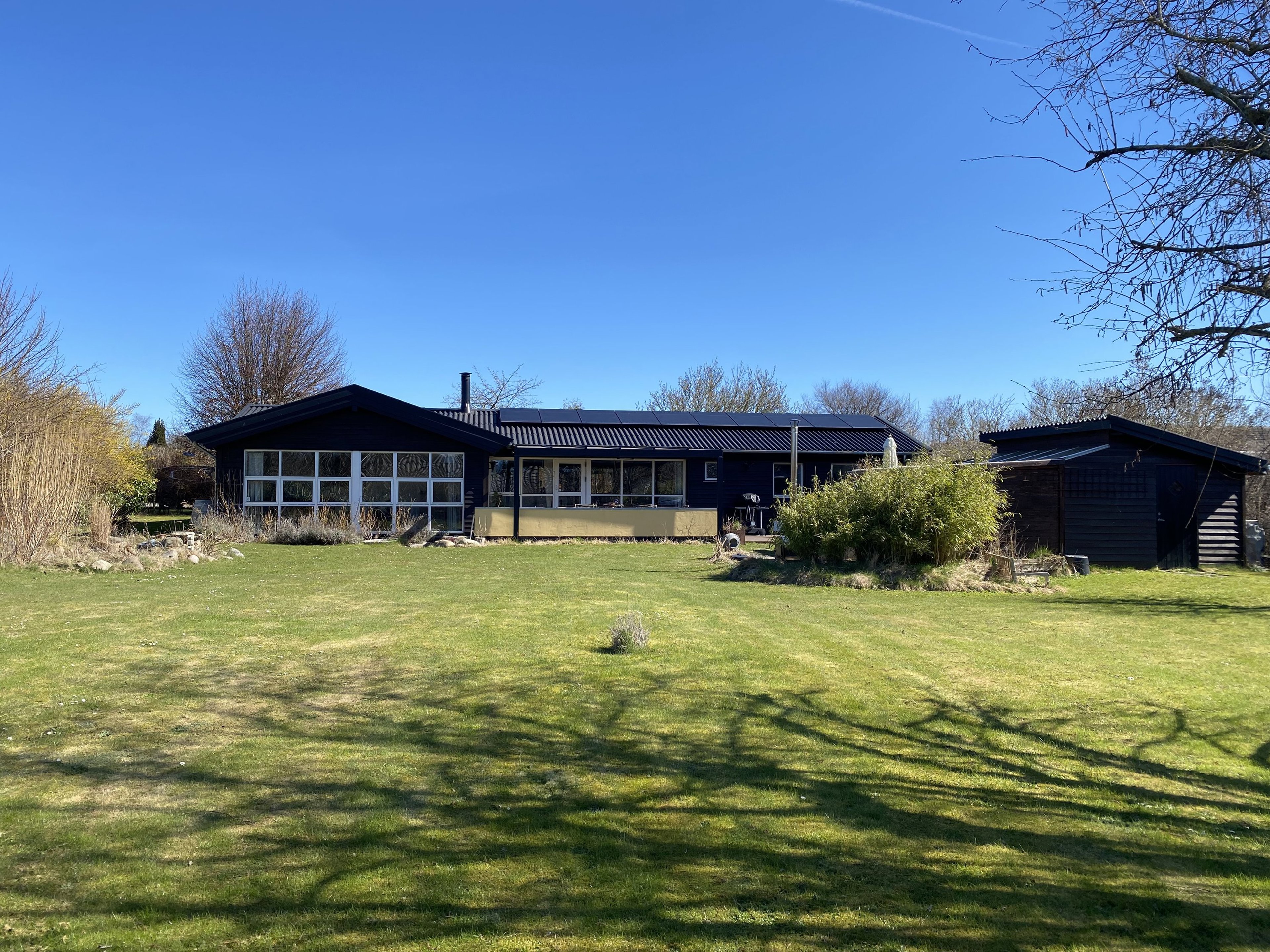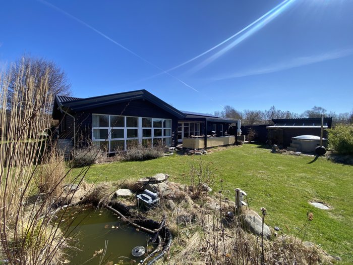 Huset er til- og ombygget i 2019 og siden løbende istandsat, så det i dag fremstår yderst velholdt, lyst og moderne – skabt til at fungere komfortabelt året rundt. Indenfor åbner rummene sig med loft til kip, flotte gulve og store vinduespartier, der lader lyset strømme ind og trækker haven helt tæt på boligen.